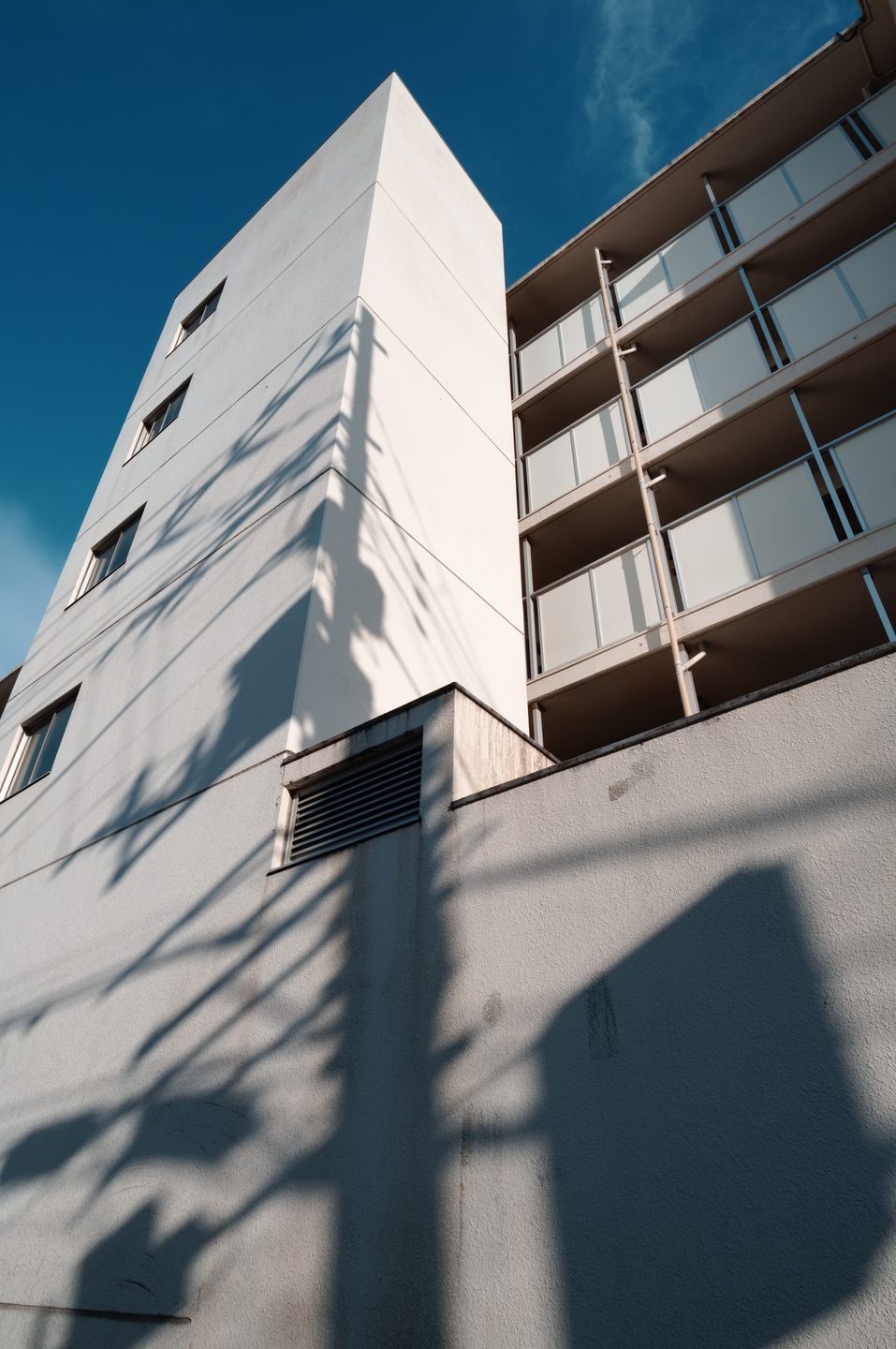 もちろん20mmという広い画角なので絞ってパンフォーカス気味にしての撮影も得意です。信号の影が落ちる建物を撮りましたが、近景から遠景までピントが来たカットになりました。色再現も見た目に近くいい印象ですね。
