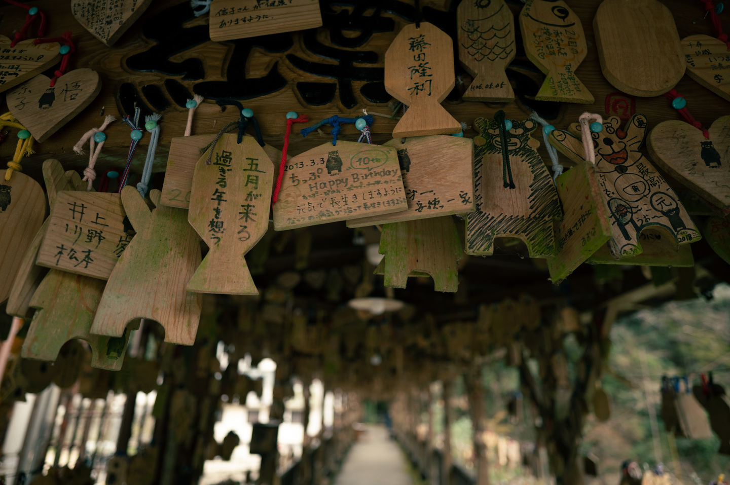 杖立川の上流に架かる「もみじ橋」には、たくさんの絵馬ならぬ「絵鯉」が願いの数だけ掛けられている。解放F2なので超広角でも背景を綺麗にぼかすことができる。超広角でこのような表現ができるのは意外だった。22cmまで寄って撮影できることの恩恵でもある。