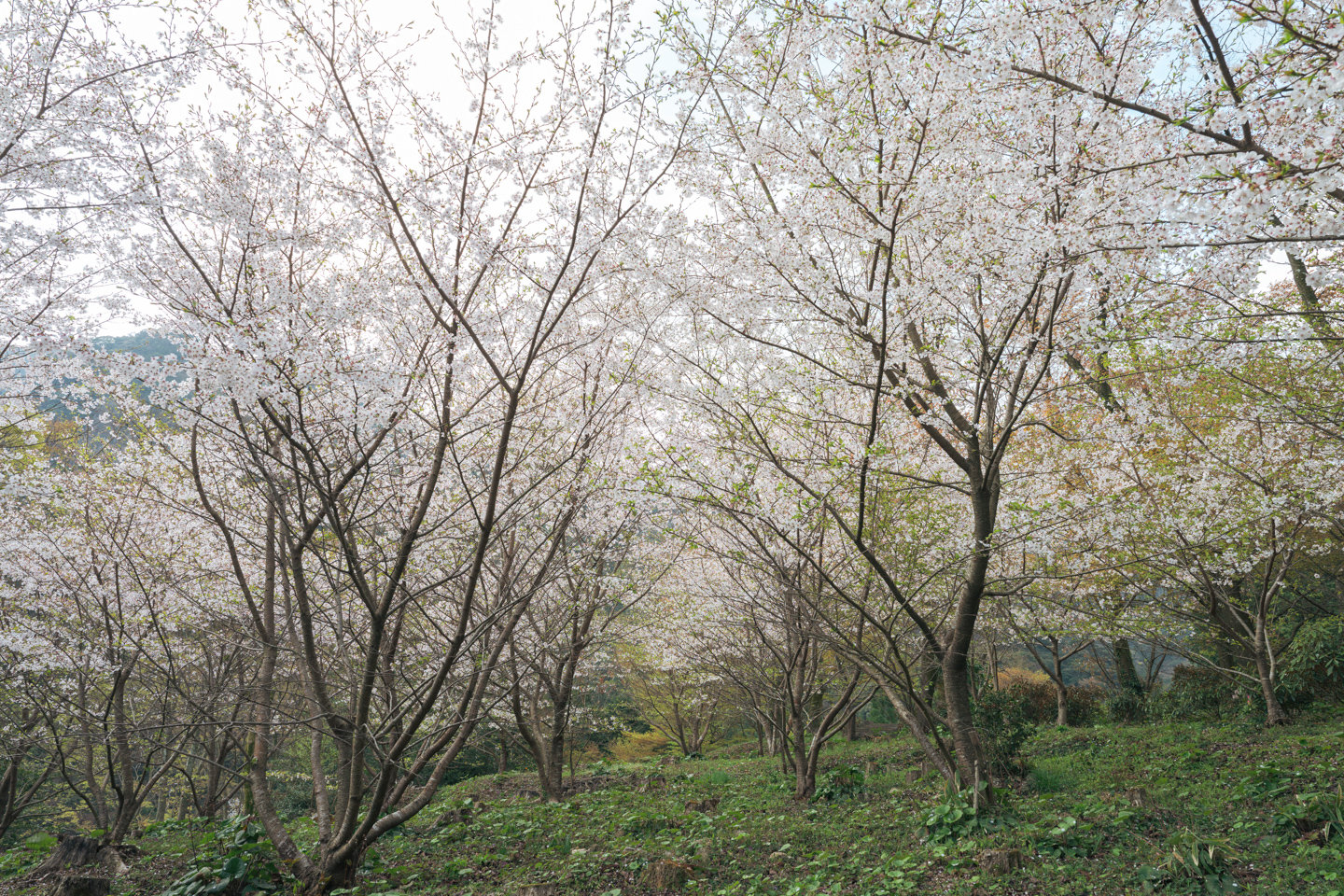 次は絞り込んで、解像感を引き出してみる。夜明け前、まだ真っ暗な時間にスローシャッターで撮影。日が登る前のローコントラストな条件でも、しっかりと解像している。川向こうの桜の花、そのはるか先の山肌までしっかりと描写している。