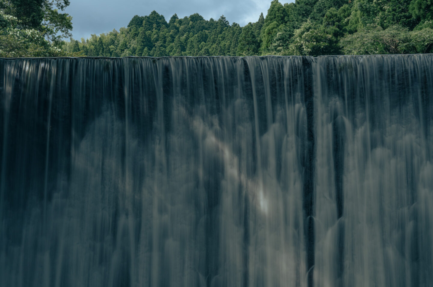 佐賀県の山間部にある石造りの橋を撮影するために1時間ほど車を走らせた。目的地に着くと、勢いよく流れる滝から轟音が響き渡る。まずはオーソドックスにスローシャッターで撮る。(写真上)