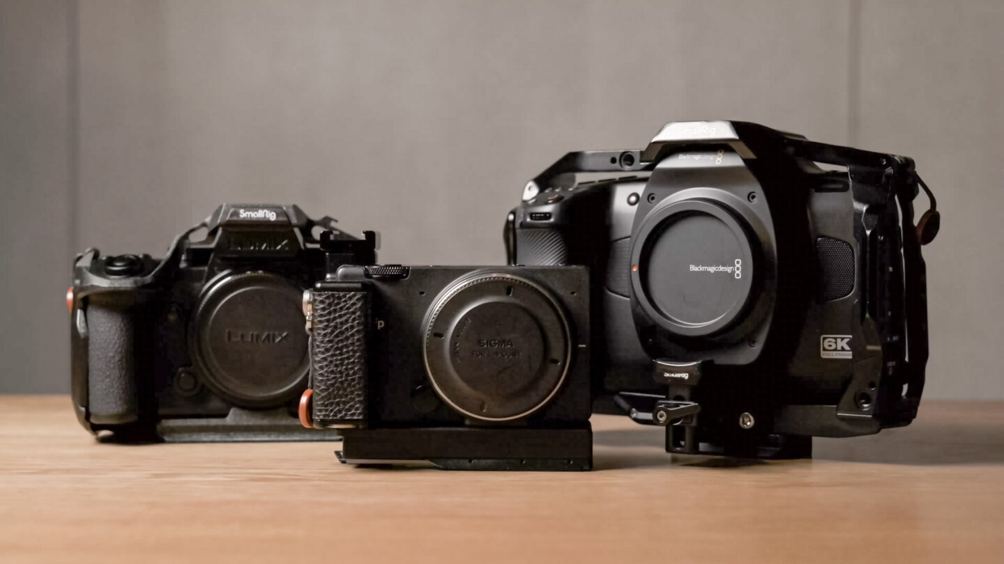SIGMA・Panasonic・Leica・DJIに加え、新たにBlackmagic Designが加わったことで、さらに選択肢が広がった。筆者の手持ち機材から3台のカメラにセットしてみた。購入前の参考になるように、サイズ感やバランスを見てもらえたらと思う。使用したボディーは、SIGMA fp・LUMIX S5IIX・Blackmagic design BMCC6Kの3台。全てケージに入れた状態でセットしてみた。