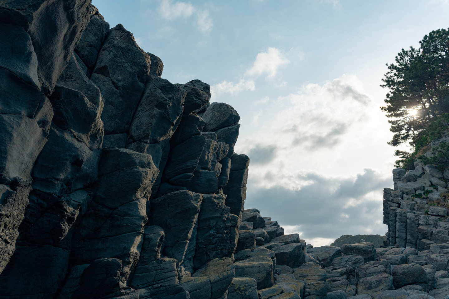 火山から流れ出たマグマが、急激に冷やされることで出来た玄武岩をより近くで撮影する。荒波が作り上げたアートの迫力を前に、夢中でシャッターを切った。このレンズの逆光耐性はとても優れている、それは、フレアやゴーストを避けるために気に入ったアングルや構図を諦める事なく、クリアな写真が撮影できることを意味する。
