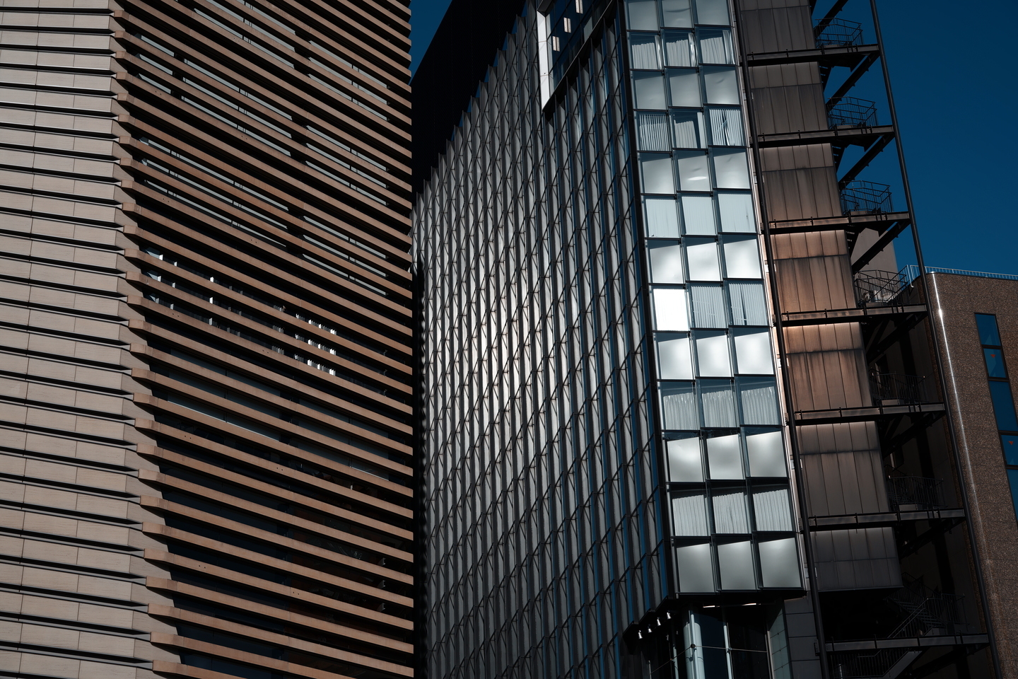 こちらのビルを撮ったカットも精細感とヌケ感が良好です。28-70mmというズームレンジは街なかスナップでとても使いやすい画角だと感じます。ほどよいワイド感からヒトの目線に近いテレ感が、自然なフィーリングを演出してくれるのです。