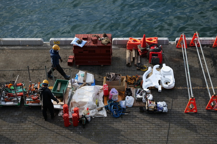 港を散策中、工事の人々が目に留まりパッと撮ったカットです。カメラは「LUMIX S5」を使ったのですが、オートフォーカスも初速がクイックで狙ったとおりのシーンをキャプチャーできました。