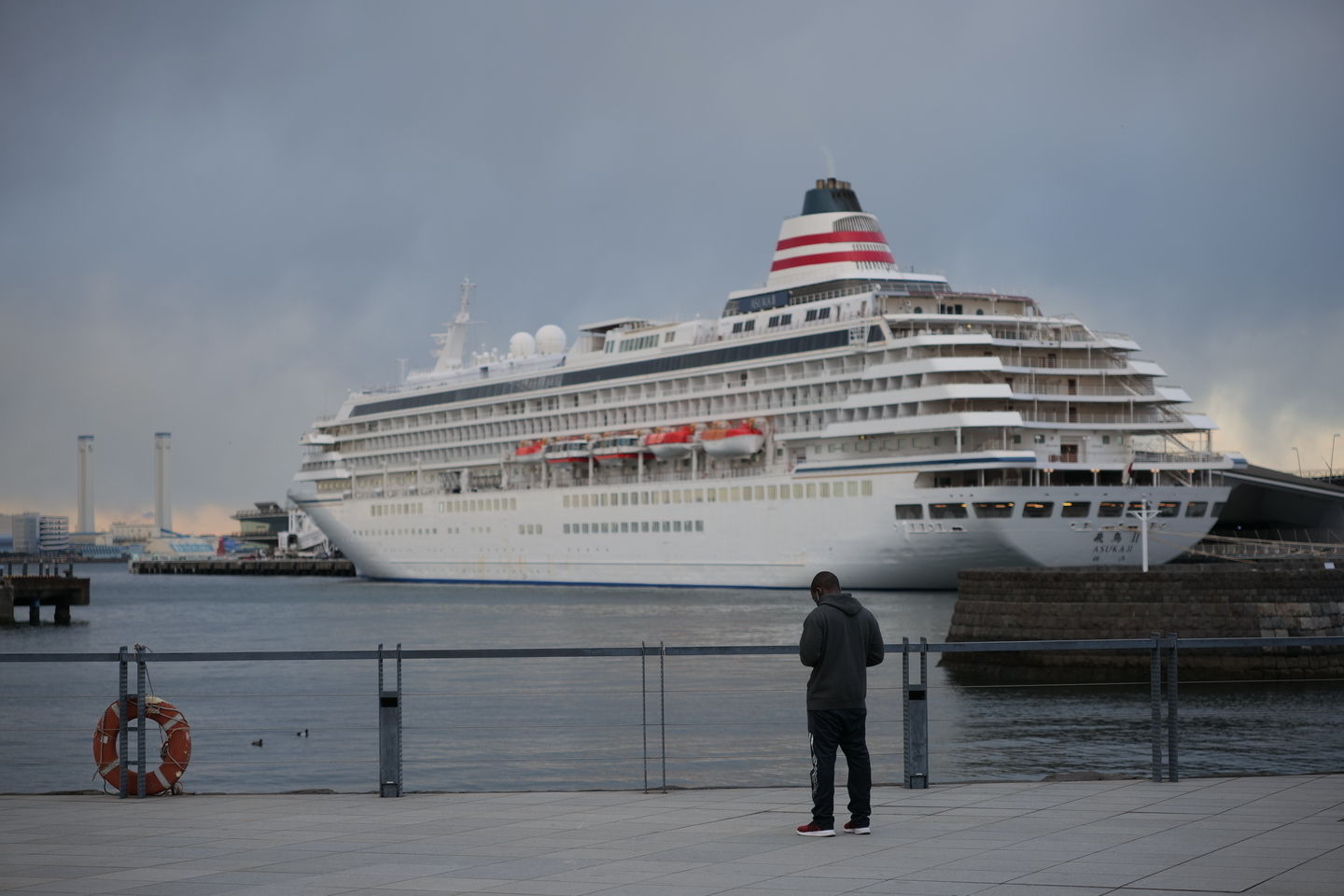 こちらも横浜港のカットです。佇む男性にフォーカスし、絞りをF2.8の開放にしました。フルサイズミラーレス一眼カメラ「LUMIX S5」なので、背景の客船がソフトにボケてくれました。F2.8通しの明るい標準ズームレンズならでは描写と言えるでしょう。