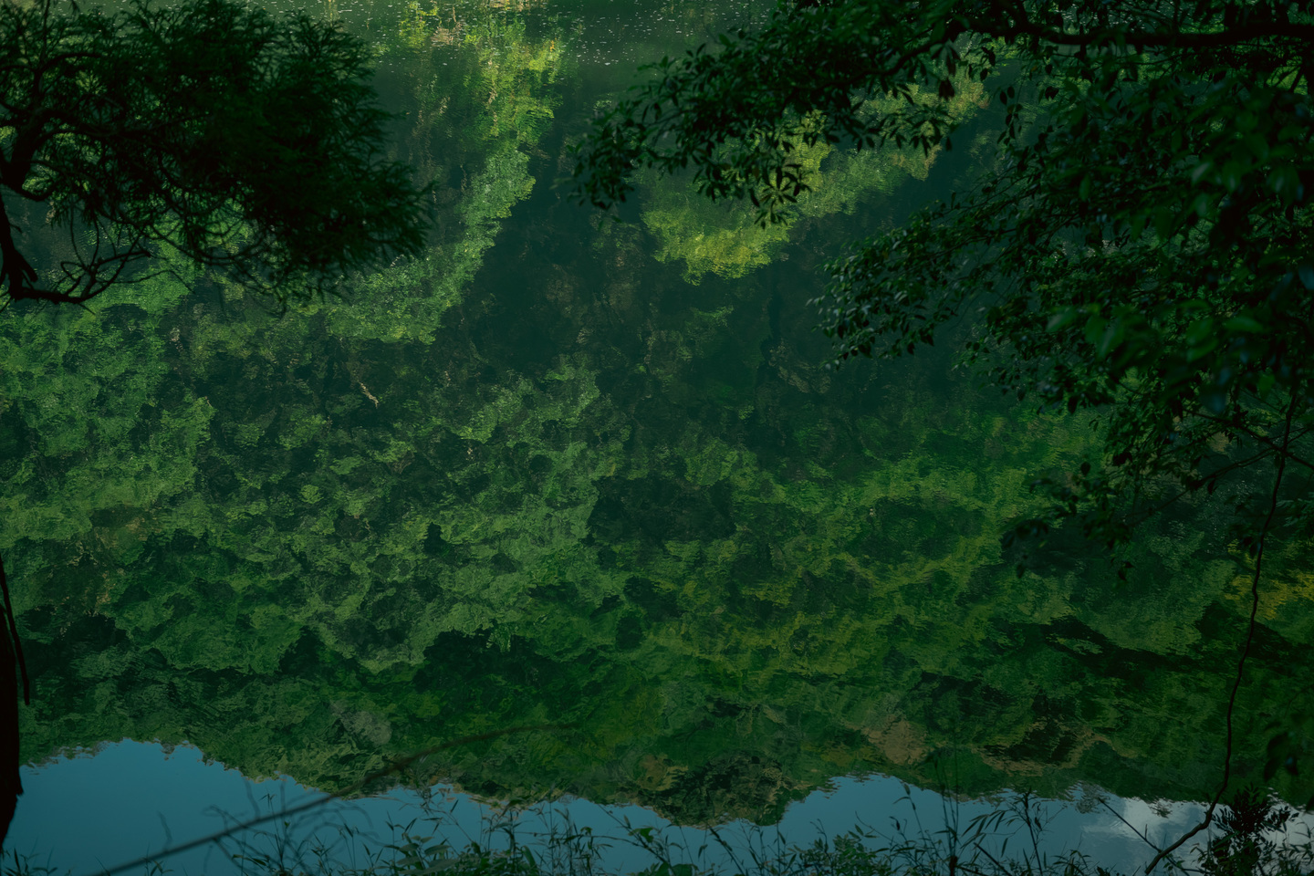 もう少し進むとさらに開いた場所を見つける。しばらくの間、自然の逆さ絵を鑑賞した。
