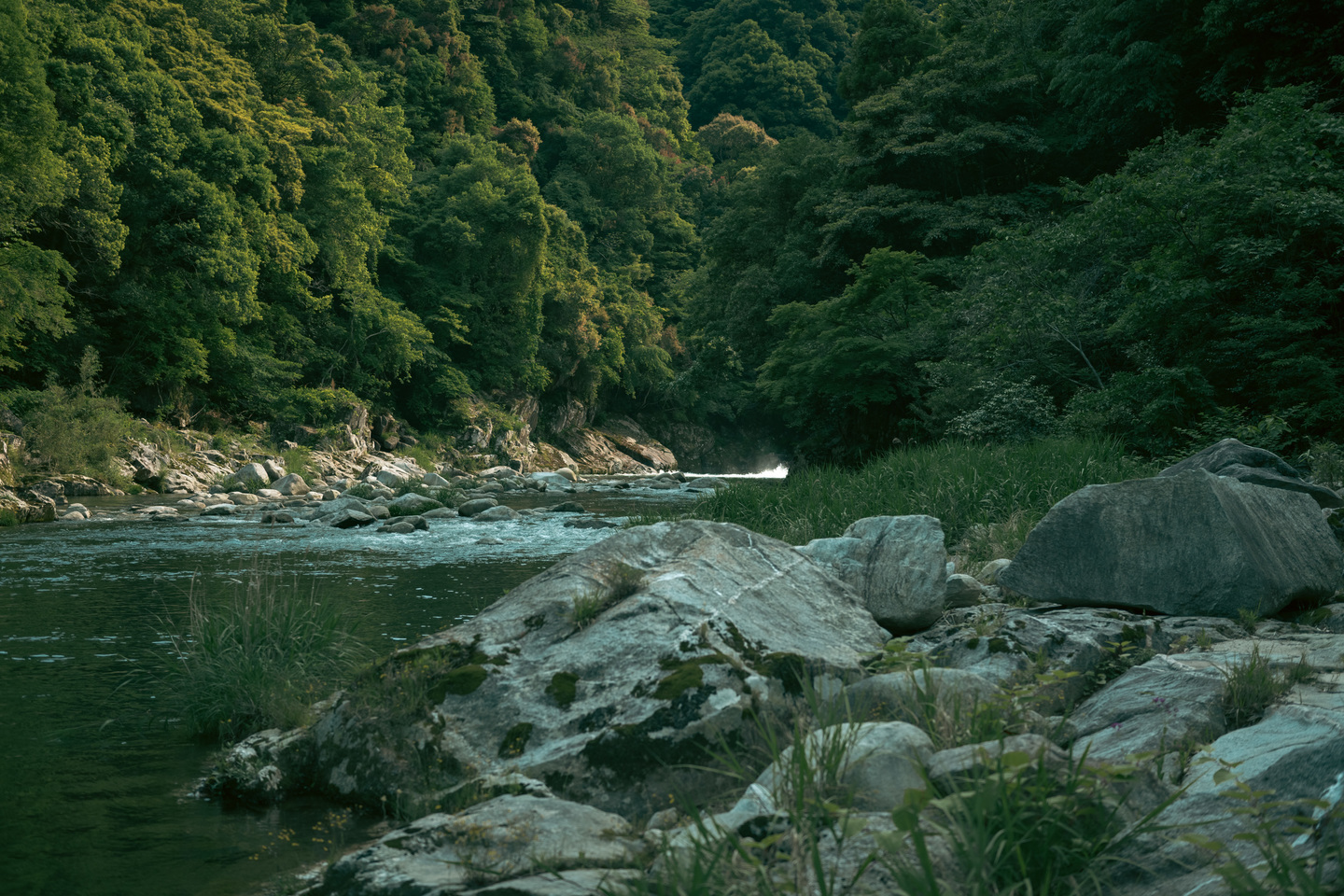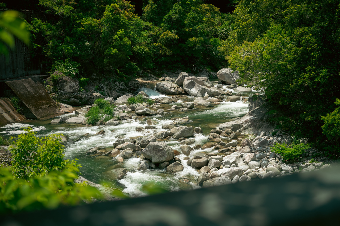 川下から見えた水しぶきは、ここから流れてきたのだろう。水量の多いこの川は、せせらぎというには少々騒がしいが、イヤホンから流れるジャズがミックスされると、とても心地よい。今日はここでもう少し休憩しよう。氷で満たしたカップには、今朝濃いめに入れたコーヒーを注ぐ。川を見ながら飲むアイスコーヒーは格別だった。次回は泊まりでどこかへ行きたい。