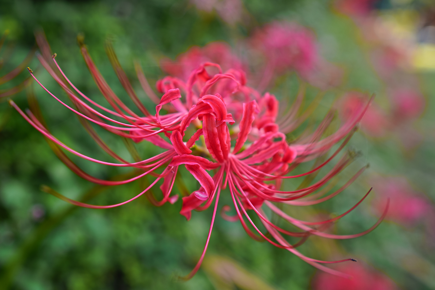 秋に咲く花の代表格・彼岸花に絞り開放で迫った。25cmまで寄れる驚異の近接撮影性能とF1.4という開放値を活かせば、背景もグンとボケてくれる。しっかりと主張する見事な花の色が美しい。ボケ感も立体感があり気に入った。