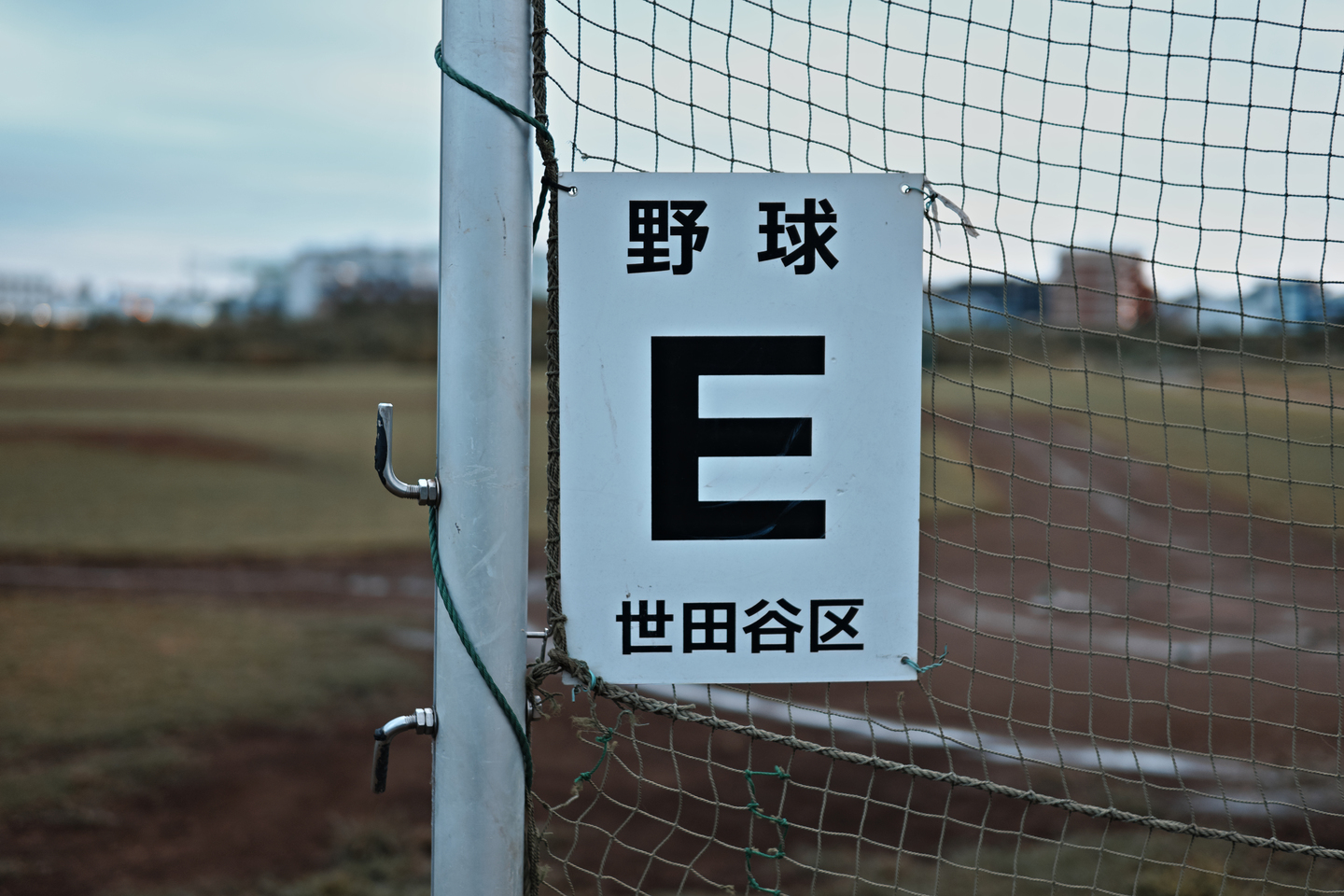 誰もいない野球場。その看板を絞り開放で撮った。絞り開放でF1.4なので、背景が自然かつキレイにボケてくれた。ピント面の看板や、金属製の支柱やネットの質感も実に見事。立体感のある写りに脱帽である
