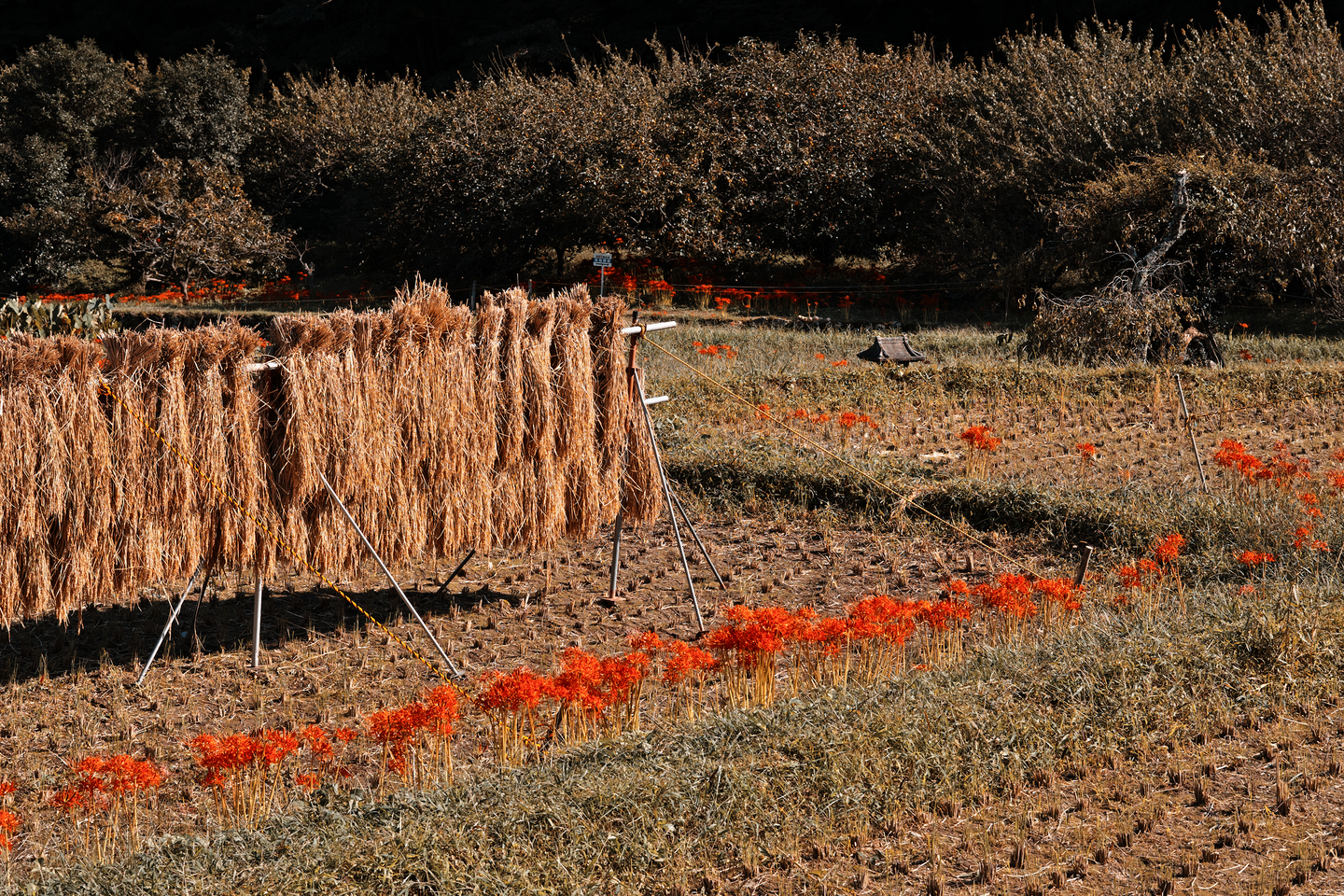 干されている稲と鮮やかに咲く彼岸花。このレンズは自然な距離感で撮影できるのがいい。F8まで絞ってシャッターを切ったので、ピントも深くなりコントラストも向上。情景をカッチリとキャプチャーすることができた。