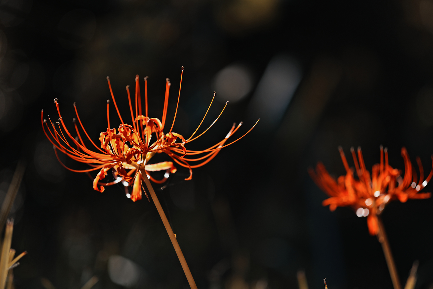 彼岸花に迫ってみた。絞り開放で最短撮影距離50cmまで近寄って撮影。黒バックに美しい曼珠沙華が浮かび上がった。後方の花も背景もキレイにボケるので、メインの花がグッと際立たせることができる。明るい中望遠らしさを手軽に味わえるレンズになっている。