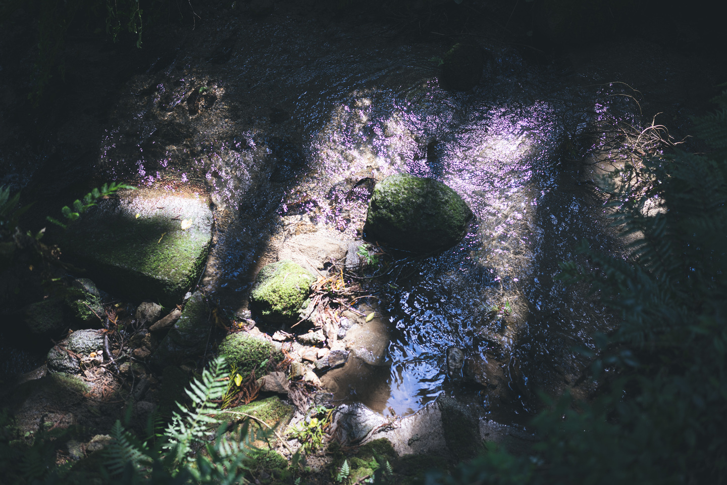 『氷のような水』小川のせせらぎを高速シャッターで時を止めて撮ると、愛用のロックグラス iittala ウルティマ ツーレのように美しい。水面の繊細な表現が素晴らしく、開放絞りでも周辺までとてもシャープに描写している。