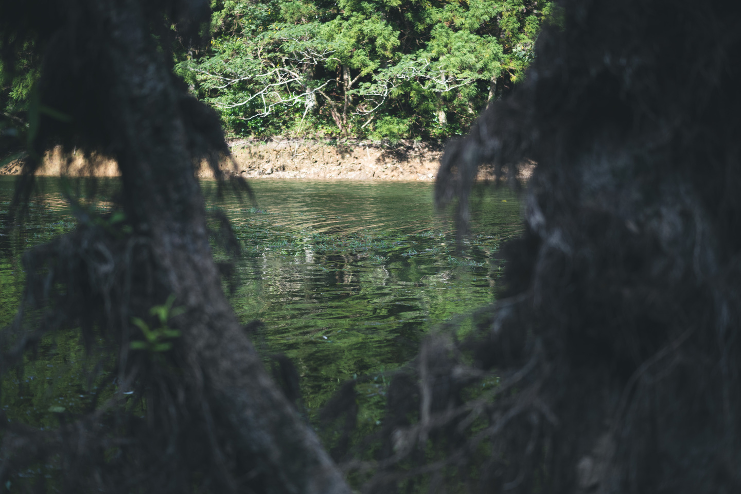 『トンネルの先は』木の枝の重なりで偶然にできた穴、その先には池がかすかに見える。その奥に鳥がいればもっと良かったが、この日は留守だった。このカットは少し絞り込んでf4に設定した、画全体から伝わる緻密な描写、解像感がさらに増して素晴らしい。35mmレンズの画角で構図を考えるのはとても楽しかった。