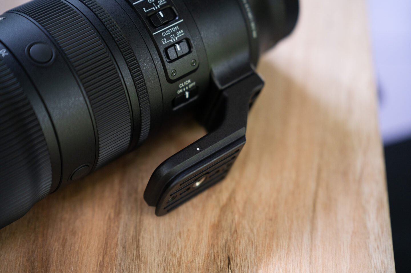 このレンズはインナーフォーカスを採用している。その恩恵もありシルエットが整っていて、とても美しい。マグネシウム製の三脚座も脱着式でありながら一体感があり、固定ノブの形状やサイズ、 ローレット加工にまでデザイン性を感じる。
