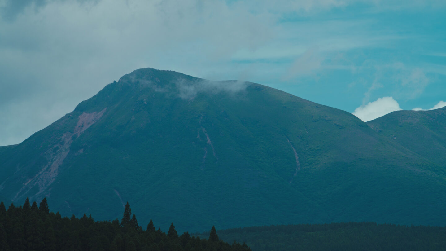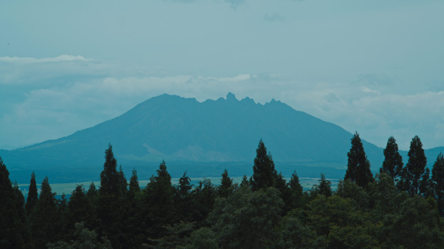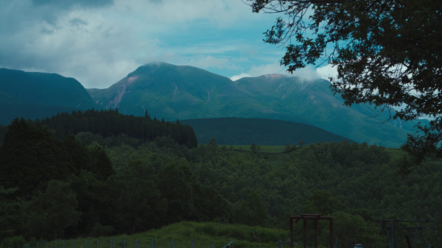 そのままティルトアップして、遠くにある険しいであろう山の稜線を撮影。滑らかなブルーのグラデーションと、手前の木々とのコントラストに距離感を感じる。f11まで絞ったが画面全体がシャープでまとまりがある。
