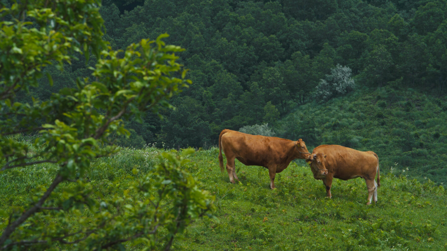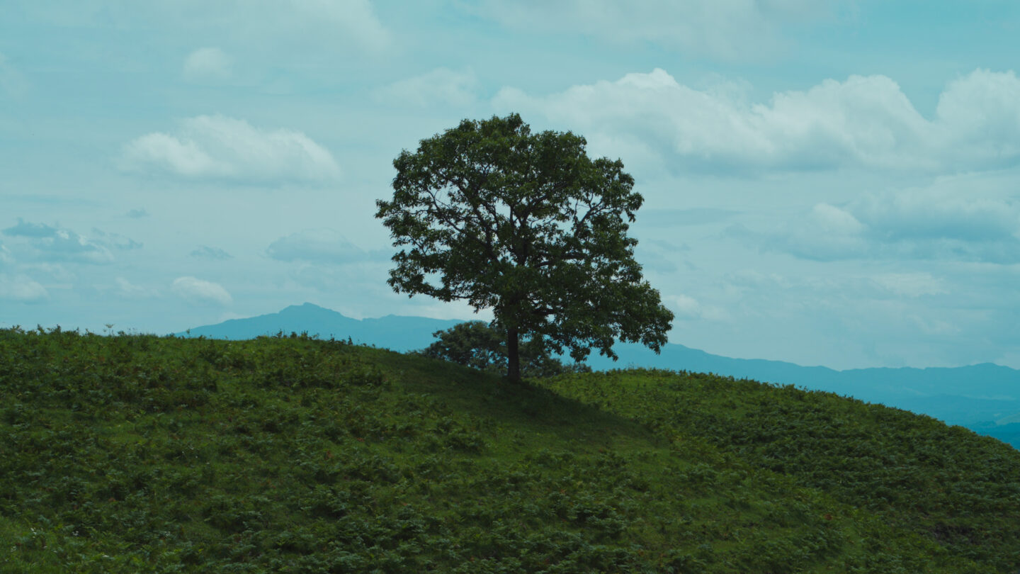 丘の上にポツンと立つ木、のんびりと草を喰む牛。風で揺れる草木や牛の毛並まで、細かなディテールをしっかりと描写している。