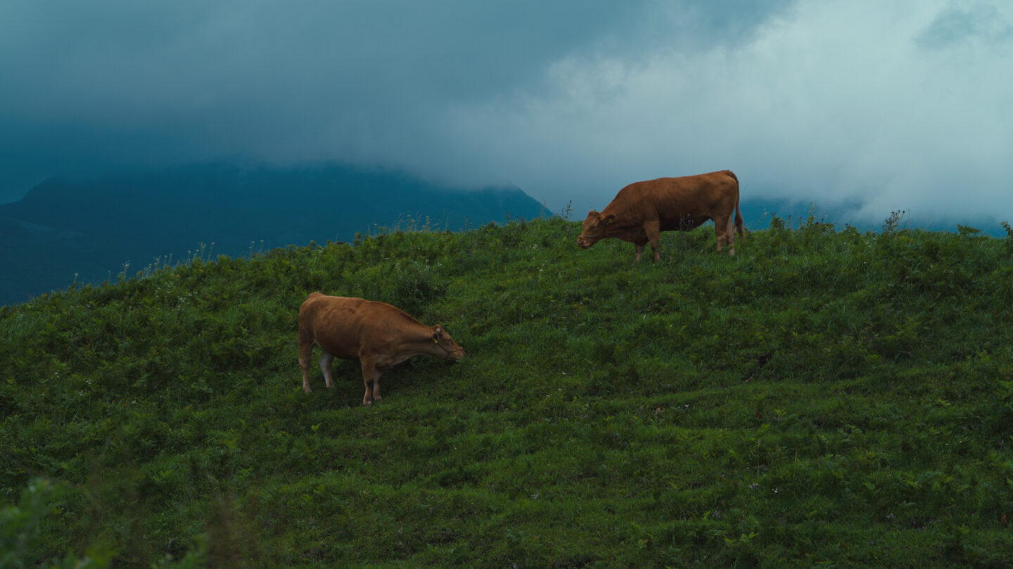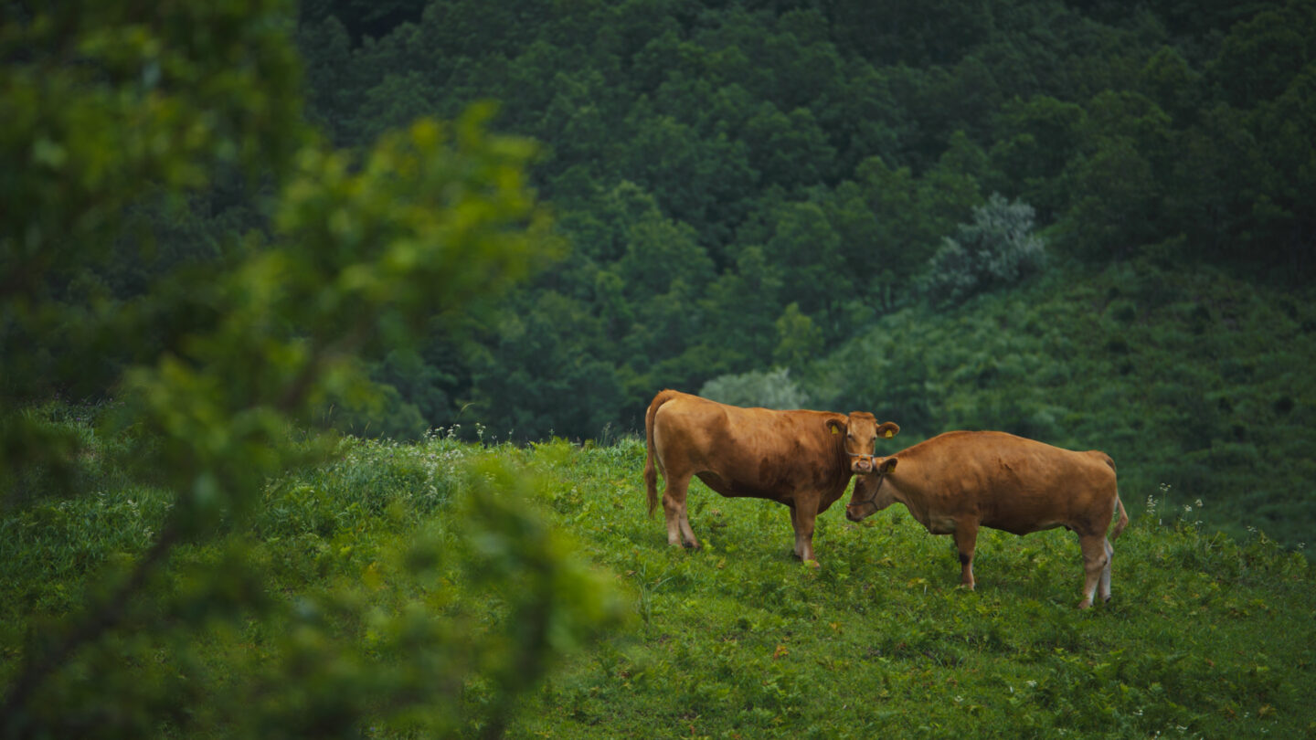 先ほどの写真の左上にある草原に、牛のような影が見えたので、望遠端200mmで寄ってみる。確かに6頭の牛が見えた。望遠端でも素晴らしい解像感である。