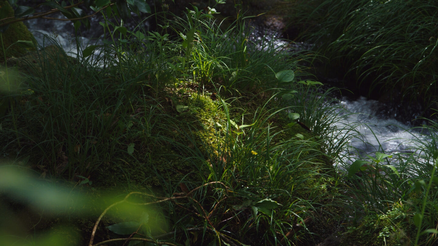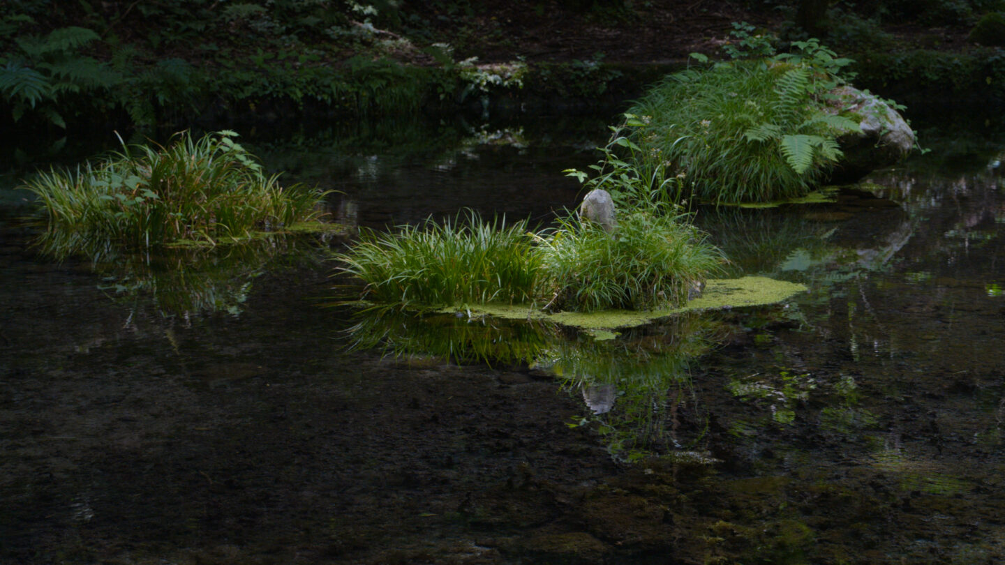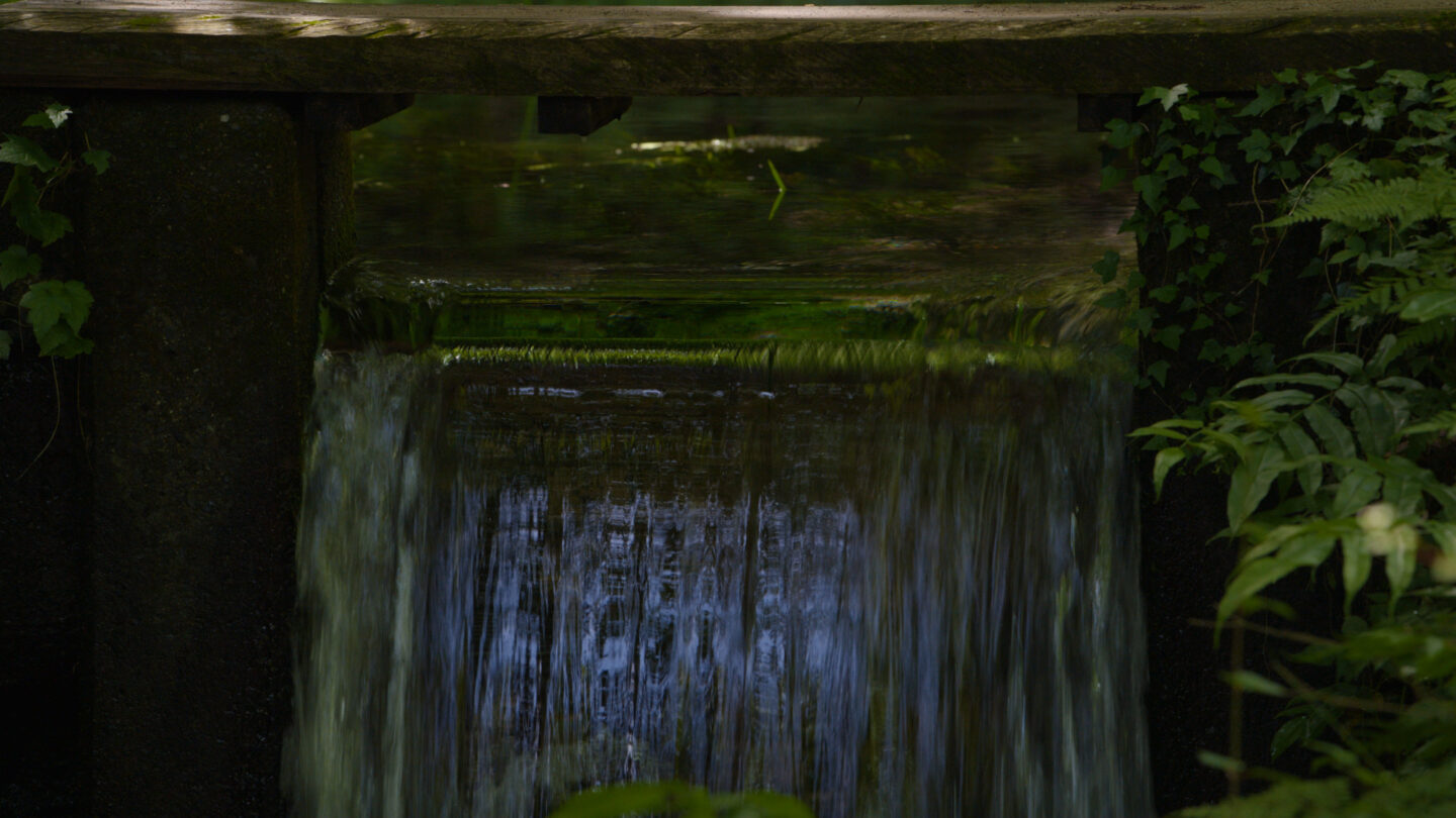 20分ほど歩いていると、湧水溢れる水源にようやくたどり着いた。空気はひんやりとして涼しい。透き通った湧水は、うすはりグラスのように涼やかで艶がある。このレンズはその雰囲気を忠実に描写している。動画で見る美しさは勿論のこと、1フレームを切り出しても見事な画質である。