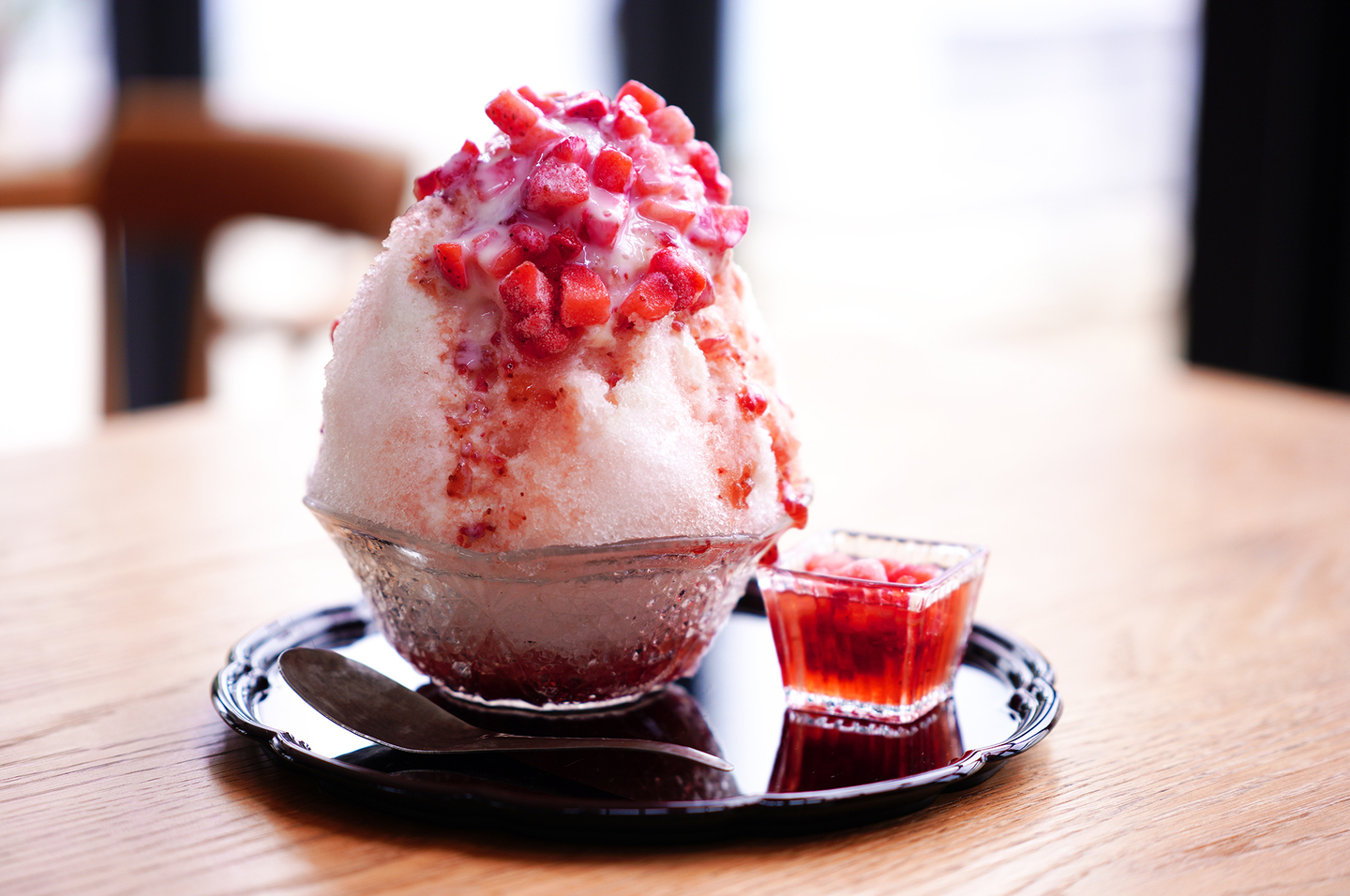 最短撮影距離が50cmというので、自分が食べたかき氷を撮ってみました。氷の上にかけられたいちごミルクの質感がリアルに表現されています。