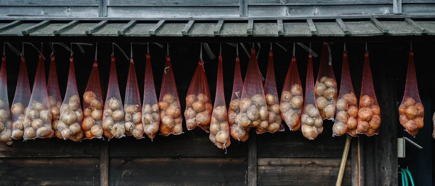 軒下に吊るされていた沢山の玉ねぎ。大きくて美味しそうです。こういった光景は都心ではあまり見かけないので、不思議な感覚で眺めてしまいます。