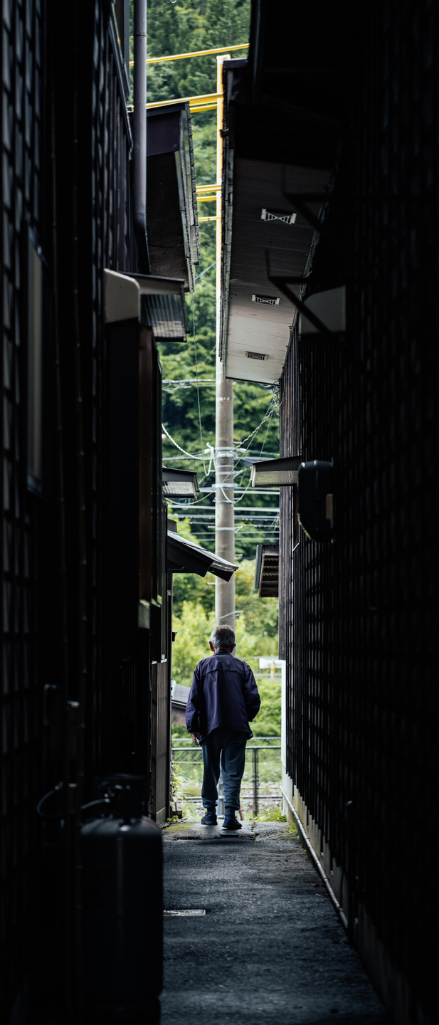 建物と建物の間の道を行く人。先に見える明るい空間に歩く姿に惹かれました。この辺は細い道が多く入り組んでいたので、スマホで道を確認しつつ歩かないと迷子になってしまうほどでした。
