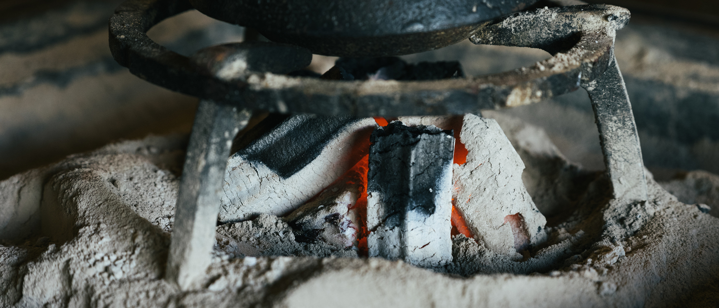 この季節にはありがたい囲炉裏です。炭火で体が温まるのはもちろん、お湯を沸かしたり、鍋で料理を作ったりすることが出来ます。炭火のじんわりとした暖かさが写真からも伝わってくる気がします。