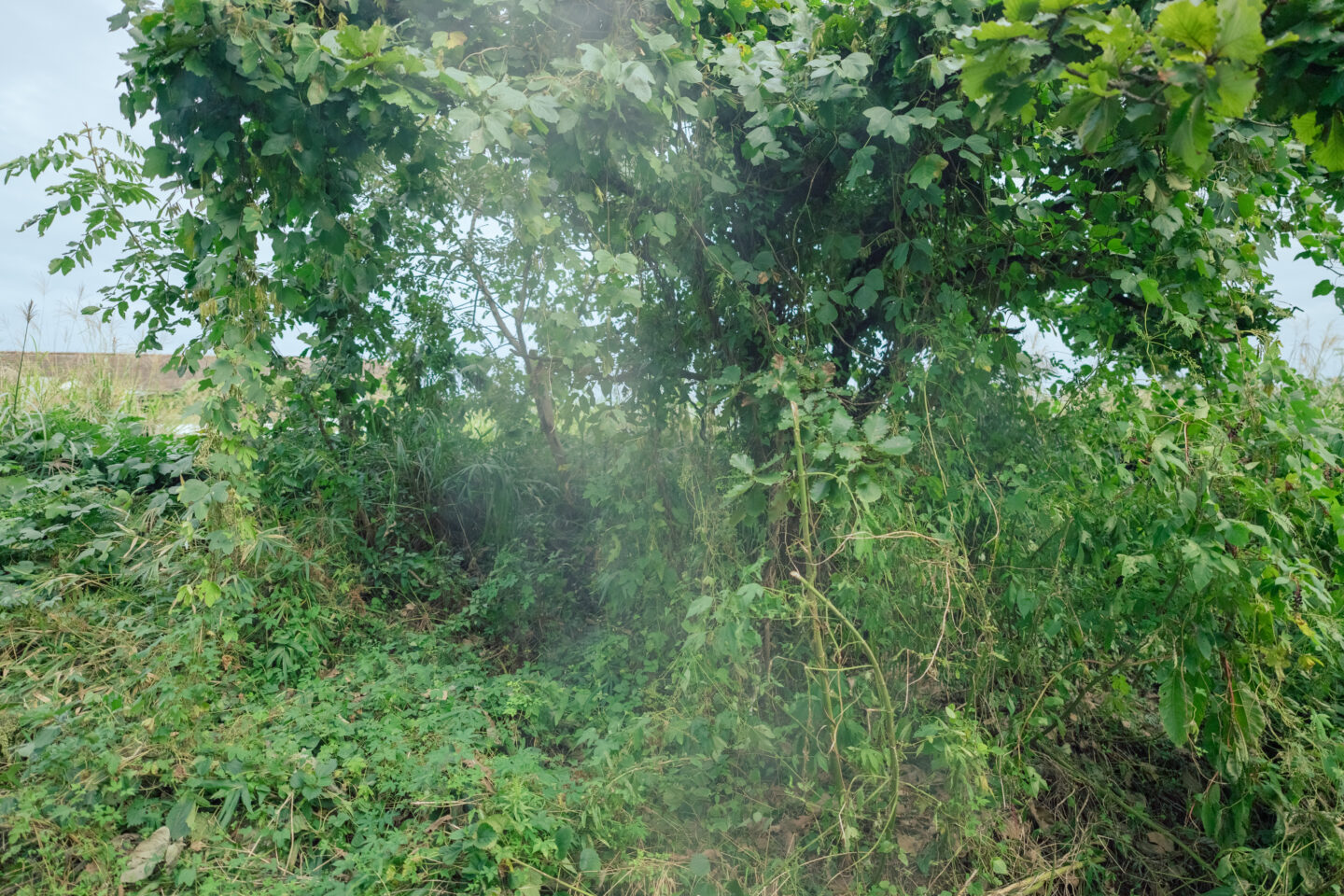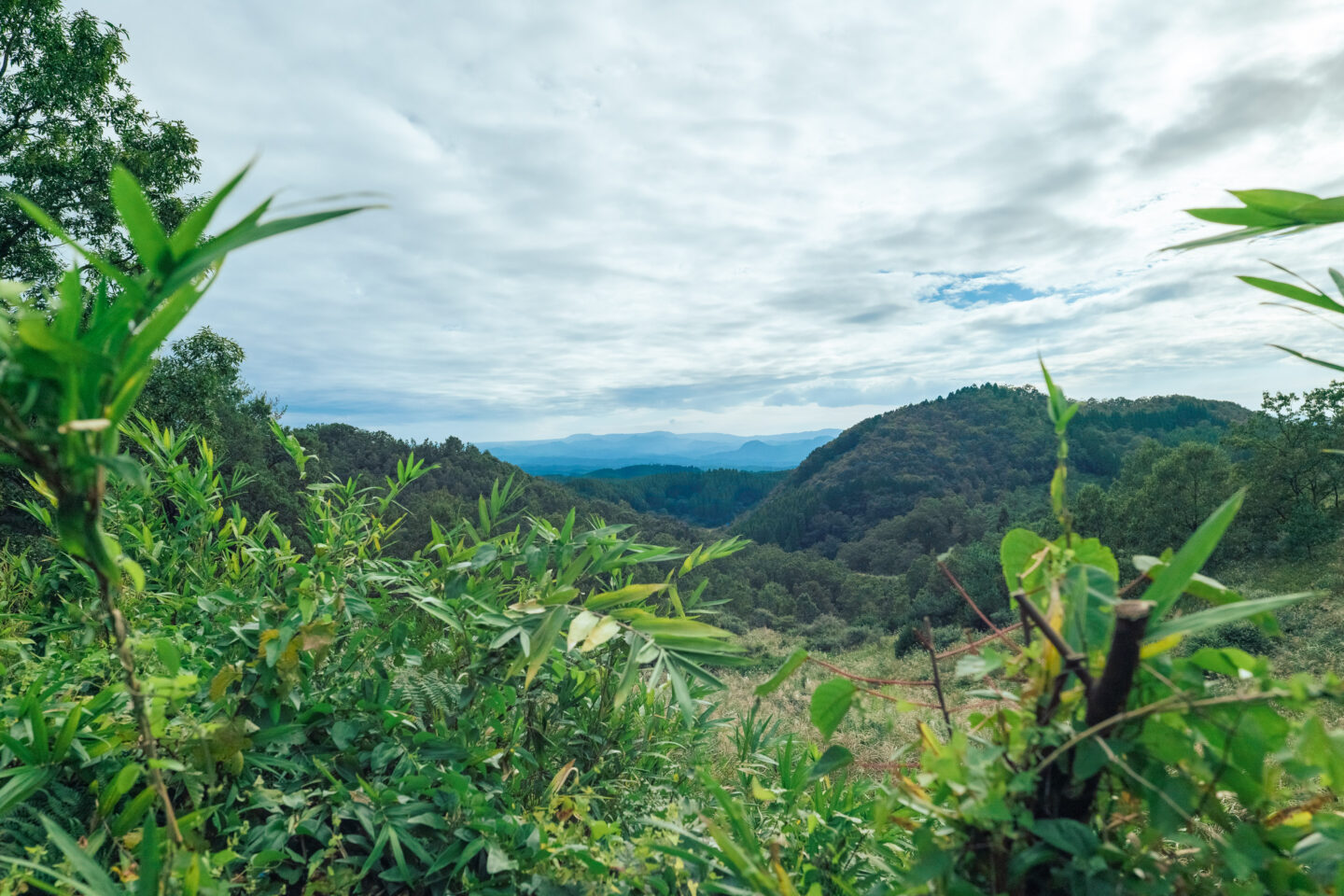 車を降りて少し歩き、高く伸びた草の隙間から遠くの景色が見えたので撮影してみることにした。F5.6に絞って撮影、さらに解像感が増す。雲や森のディティール、手前の草たちの表情も自然に表現している。立体感を感じる描写は、撮影をしていて楽しく感じる。