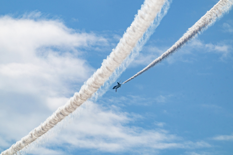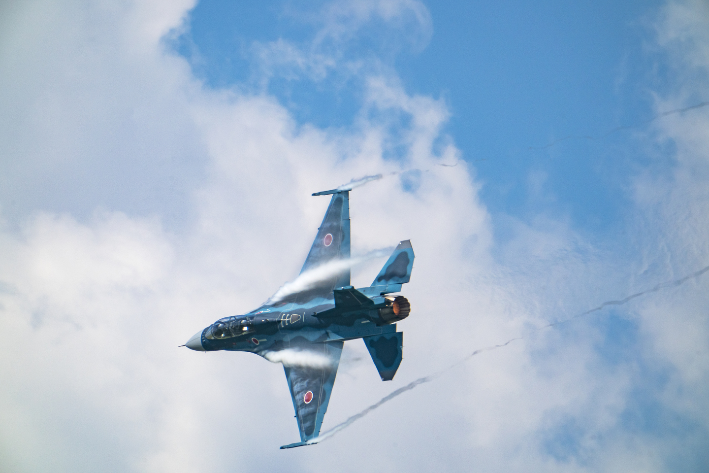 撮影時の環境にもよりますが、急旋回時や急上昇時などに発生しやしやすいベイパー※を捉えると写真が一層引き立ちます。ぜひ狙ってみましょう。