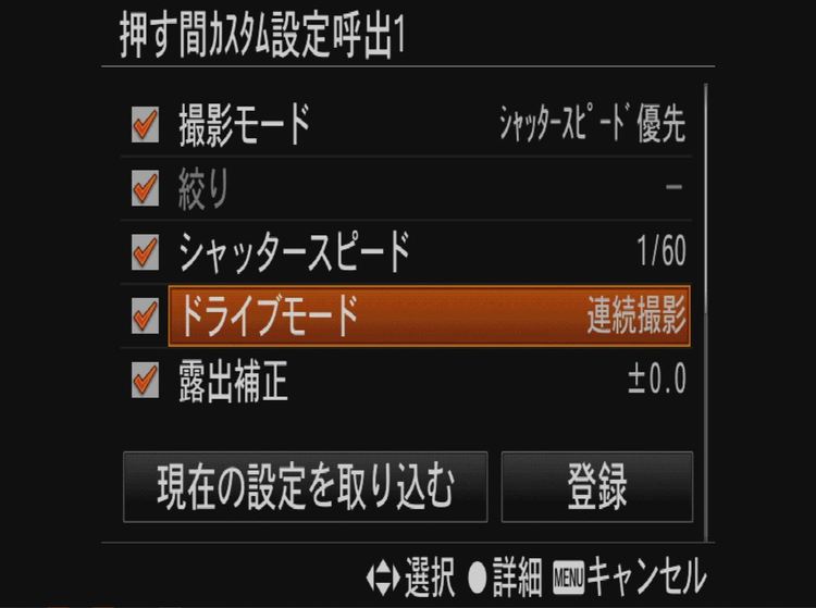撮影している時に、大幅に設定を変えたくなるシーンがある場合に皆さんはどうしていますか?例えばスポーツやモータースポーツなどの撮影の際、被写体を止めて撮影するシーンからスローシャッターで流し撮りをする際には、シャッター優先モードで、シャッター速度を大きく落としていけば撮影が可能になるわけですが、実際にはシャッター速度の変更だけでなくISO感度の設定や絞りの値もコントロールする場合も多いですよね。