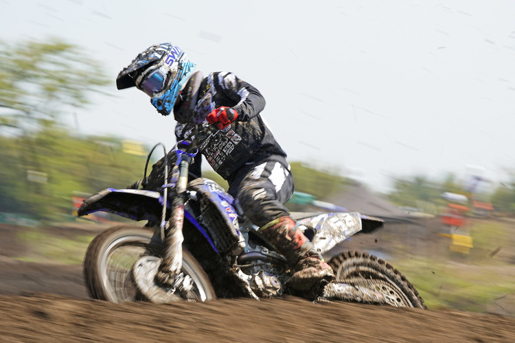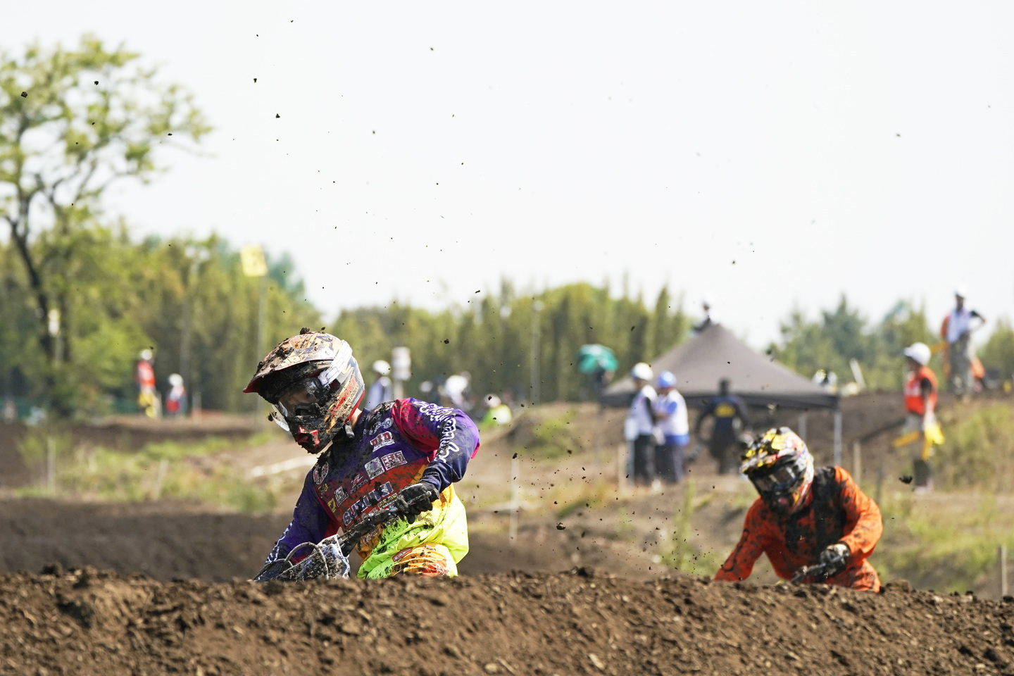 実際に撮影したのがこの写真になります。1枚目の写真は高速シャッター(1/5000秒)で撮影し、2枚目の写真では、すぐ後ろから来た次のライダーをスローシャッター(1/60秒)で流し撮りしています。