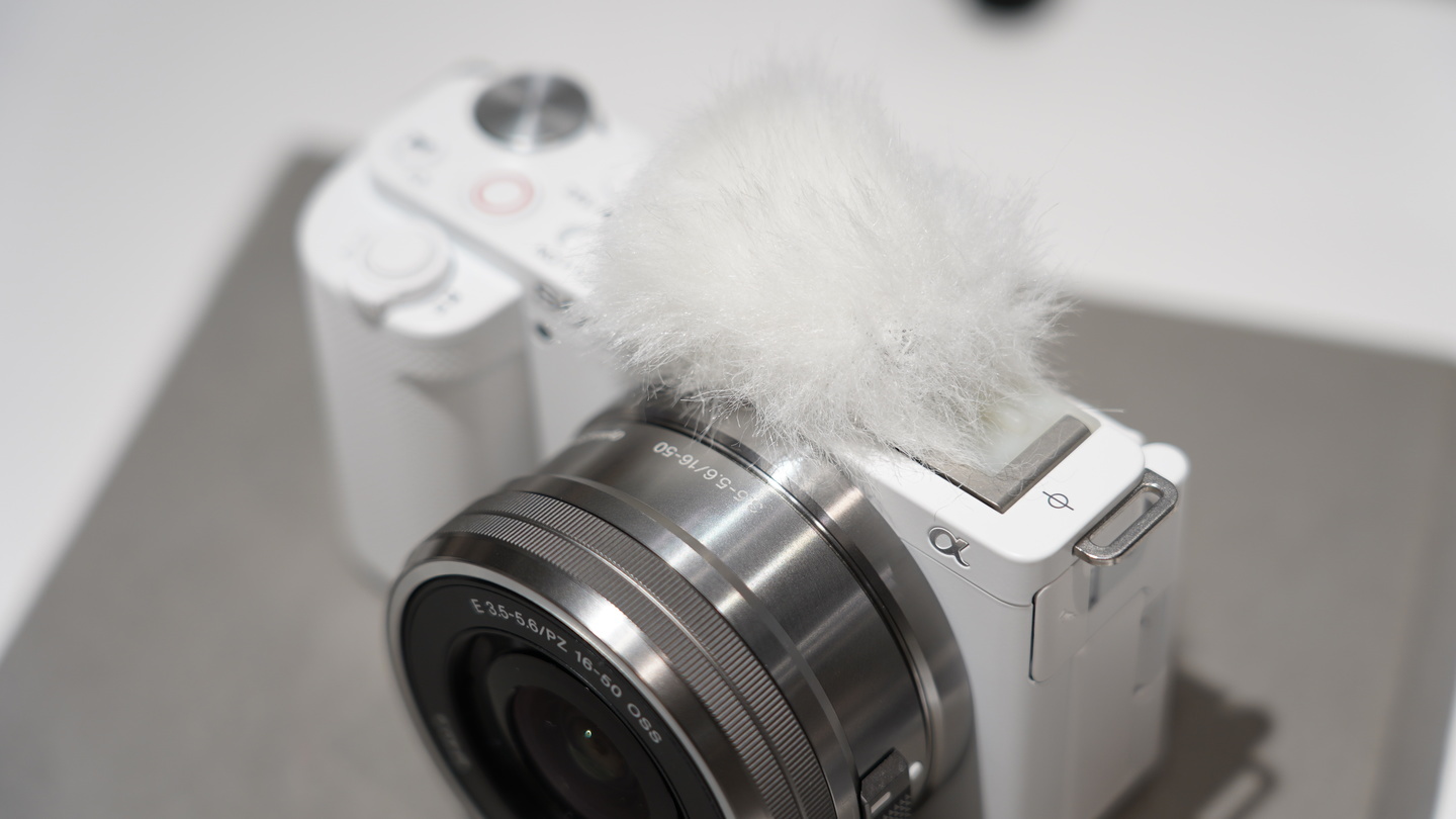 ZV-1と同様にカメラの天面には可愛らしいモフモフが装着され、指向性3カプセルマイクを搭載していますので風切り音や環境音を抑えて話し手の声をはっきりと拾う事ができます。