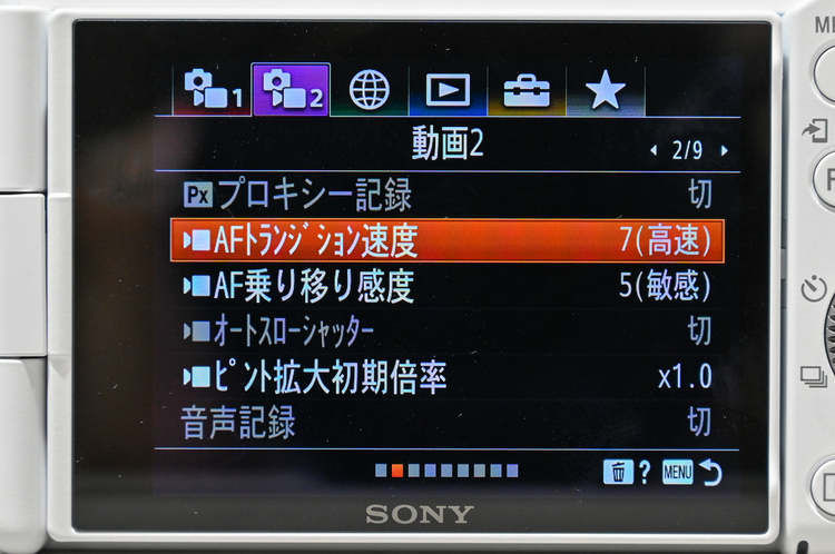 像面位相差AFセンサーを搭載していますので、高精度に素早くフォーカスを合わせてくれます。「AFトランジション速度」で調整を行えばフォーカスの移動速度を「7段階」で調整できたり、被写体切り換えの感度を調整する「AF乗り移り感度」「5段階」で設定できたりしますので、思い通りの映像表現を楽しむ事ができます。