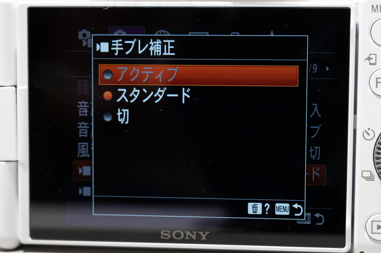 動画撮影のように歩きながら撮影する場合は、光学式手振れ補正では思い通りにブレを抑える事が難しいと感じる事があると思います。本機の手振れ補正のアクティブモードは電子式となる為撮影画角は少し狭くなりますが、歩きながら自撮りする時など強力にブレを低減する事ができます。