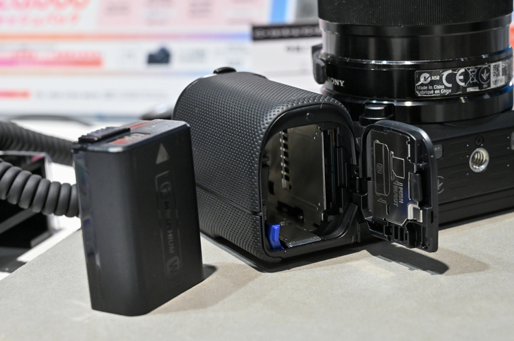バッテリーはα6400同様のNP-FW50を使用しており、最大80分の動画撮影、もしくは440枚の静止画撮影が可能です。USB端子はUSB Type-Cを使用していますので、モバイルバッテリーからの給電も可能です。またSDカードはバッテリーの横に1枚入るようになっています。