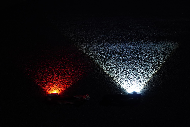 4つ目にヘッドライトですが、これは暗い中で両手を自由に使うためには必ず必要になります。防災のためにヘッドライトをお持ちの方も多いかと思いますが、星景写真では主に手元を照らすために使いますので、あまり明かりが強いものは使いません。私の場合は、駐車場から撮影場所まで徒歩移動する時に使う登山用ライト(右側)と、撮影用に使う天体観測用ライト(左側)の2つを使い分けています。