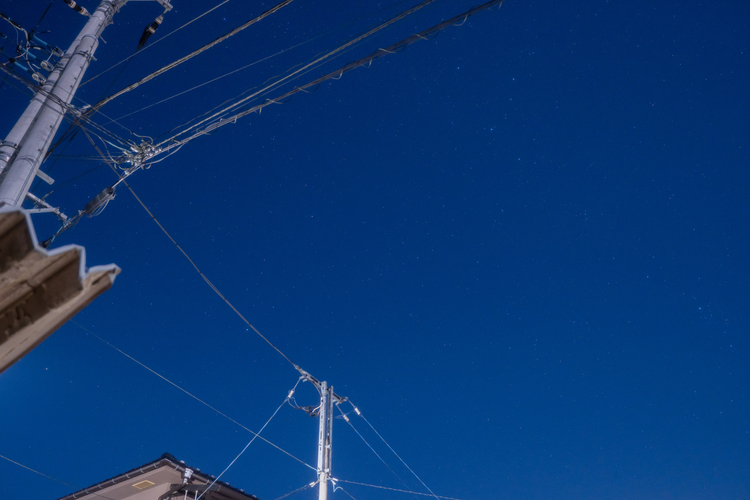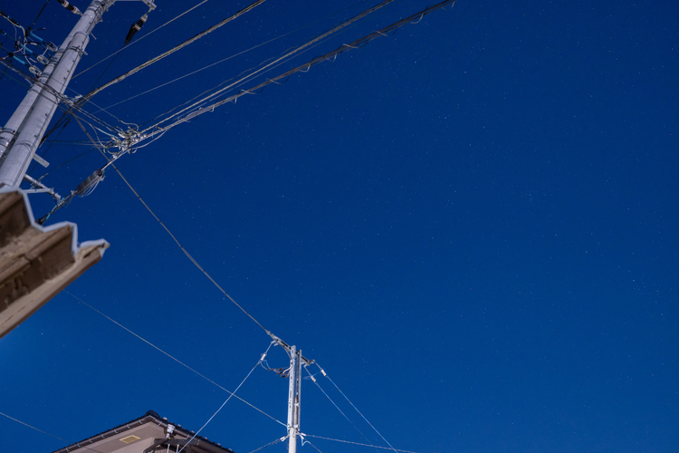 次はいよいよ試し撮りです。そのときの目安となる露出設定はISO感度800 / F値 開放(一番小さい値) / シャッタースピード 10秒になります。この値は、郊外の住宅地で撮影した時の目安の設定ですので、撮影場所によっては明るすぎたり暗すぎたりするでしょう。そのため、一枚撮影したら写真を再生して明るさを確認します。もし、明るいと感じたらISO感度を400にしてみてもう一度撮影してみましょう。逆に暗いと感じたら、シャッタースピードを10秒ずつ長くしてみましょう。
