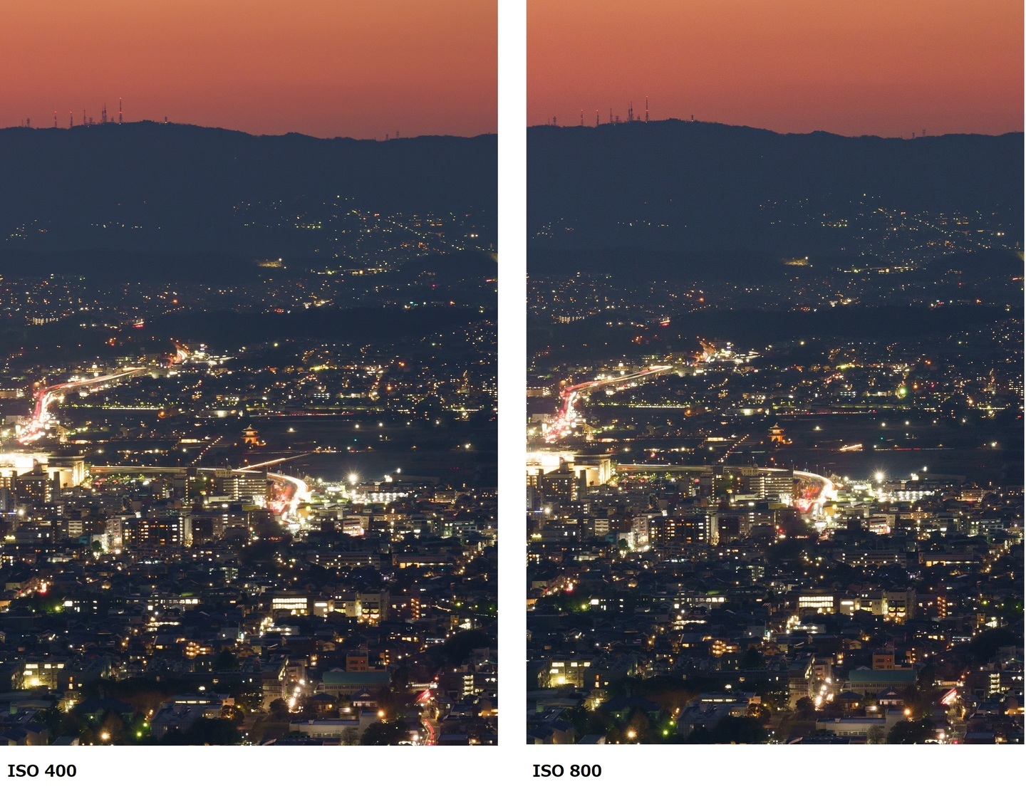 スローシャッターでの撮影では低感度側を使うことが多く、ほとんどの場合、意識せずとも良好な画質が得られる。
