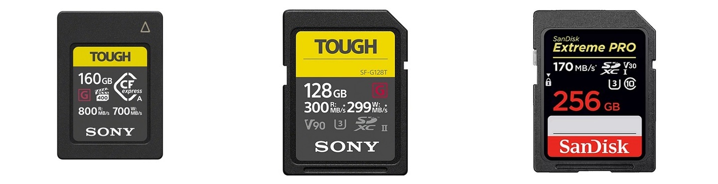 α1の連写性能を最大限に活かすためには、CFexpress Type Aカードが必要です。SD(UHS-I/II対応)カードでは、残念ながら連写性能の最大限の能力を引き出すことが出来ません。