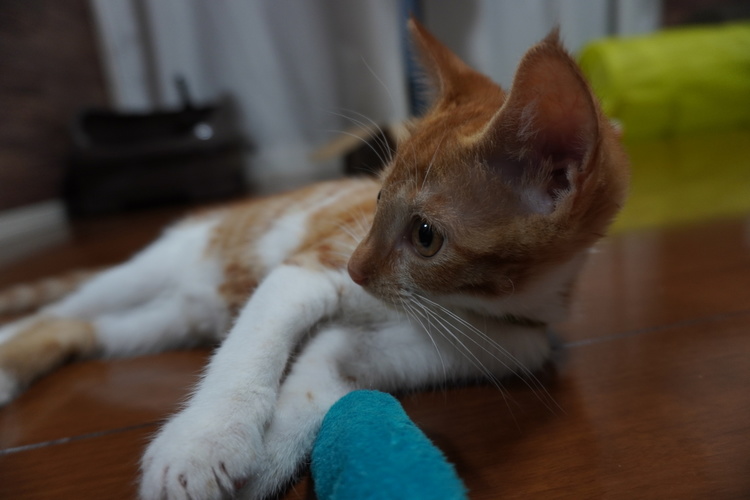 また構図の中に納まっている瞳は、両目でなくても追従を続けてくれました。遊び疲れた猫がそっぽを向いても、このようにAFを逃しません。