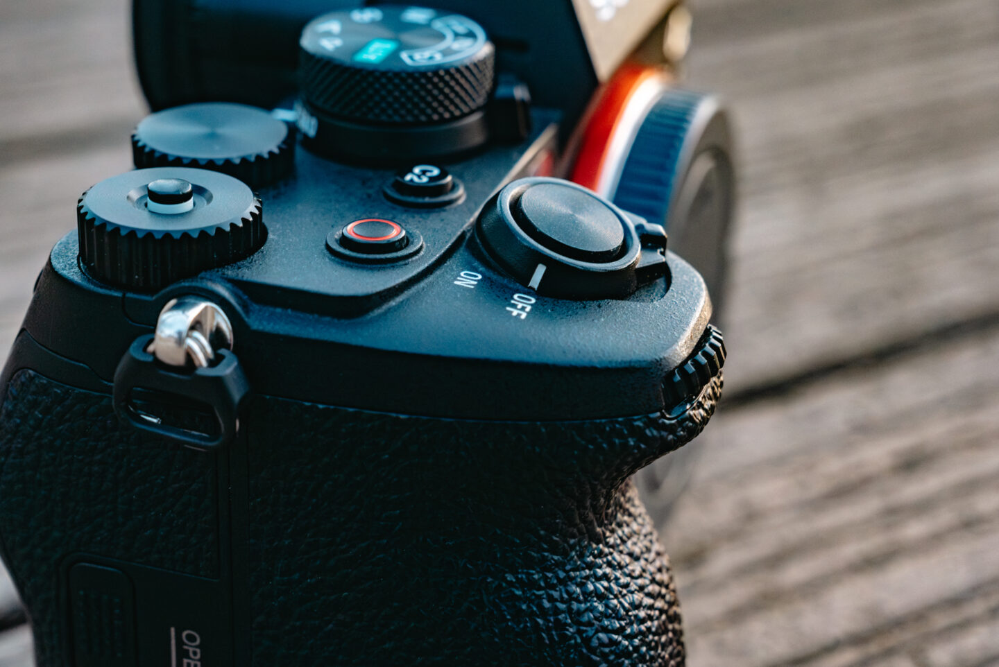 グリップを横から見てみると電源スイッチ、シャッターに傾斜が付いています。細かい部分ですが、この角度がちょうど指に馴染む感覚があり気に入っています。
