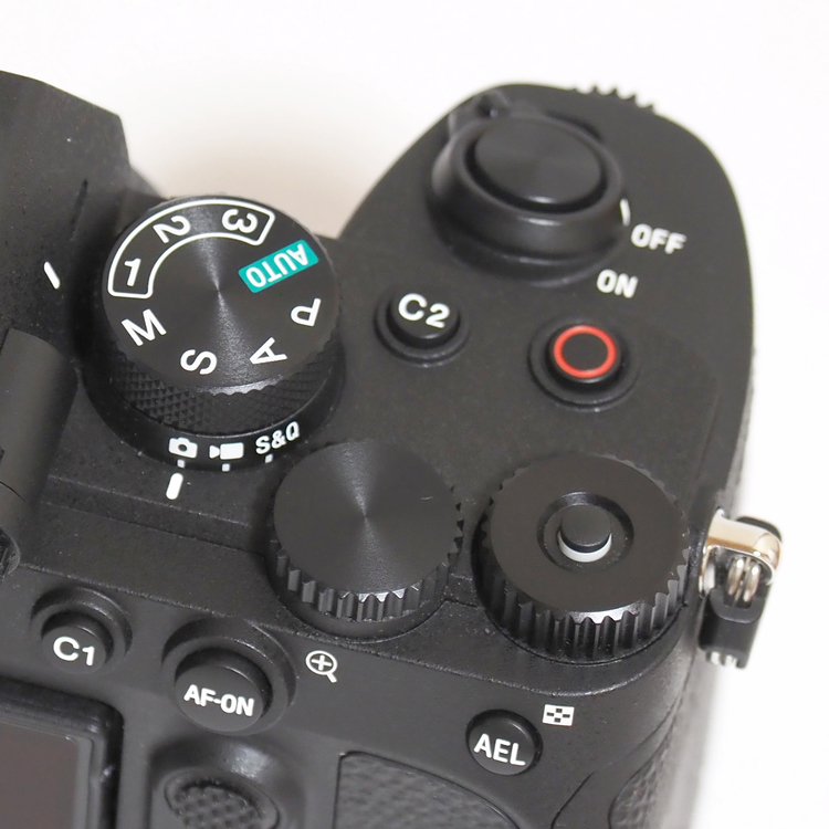 カメラ右肩部分、露出補正ダイヤルの刻印がなくなり、露出補正以外の機能が割り当て可能になりました。これは歴代αを通して初めてのこと。筆者は露出補正の単位を0.5EVに設定しているため従来の0.3EV刻みのみで機能する露出補正ダイヤルは全く出番がなく使っていませんでした。それだけにこの変更は嬉しいもので早速ISO感度を割り当てたところ、従来、ボタン+ダイヤル操作で行なっていたISOの変更がダイヤル単独で出来るようになり、操作性の大幅アップにつながりました。ダイヤルロック機構が備わっているため勝手に設定が変わってしまう事もありません。ちなみに露出補正はその左隣の後ろダイヤルに割り当てて使っています。