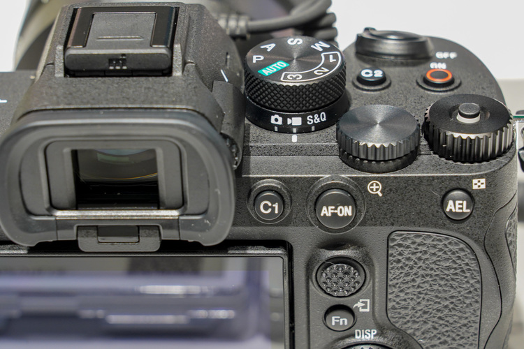 α7 IIIで背面にあった録画開始ボタンが天面に移動し、その位置にC1のカスタムボタンがあります。また、親指あたりにあるAF-ONボタンが少し大きくなり押し易くなるなど、背面はα7S IIIと同様のデザインになっています。