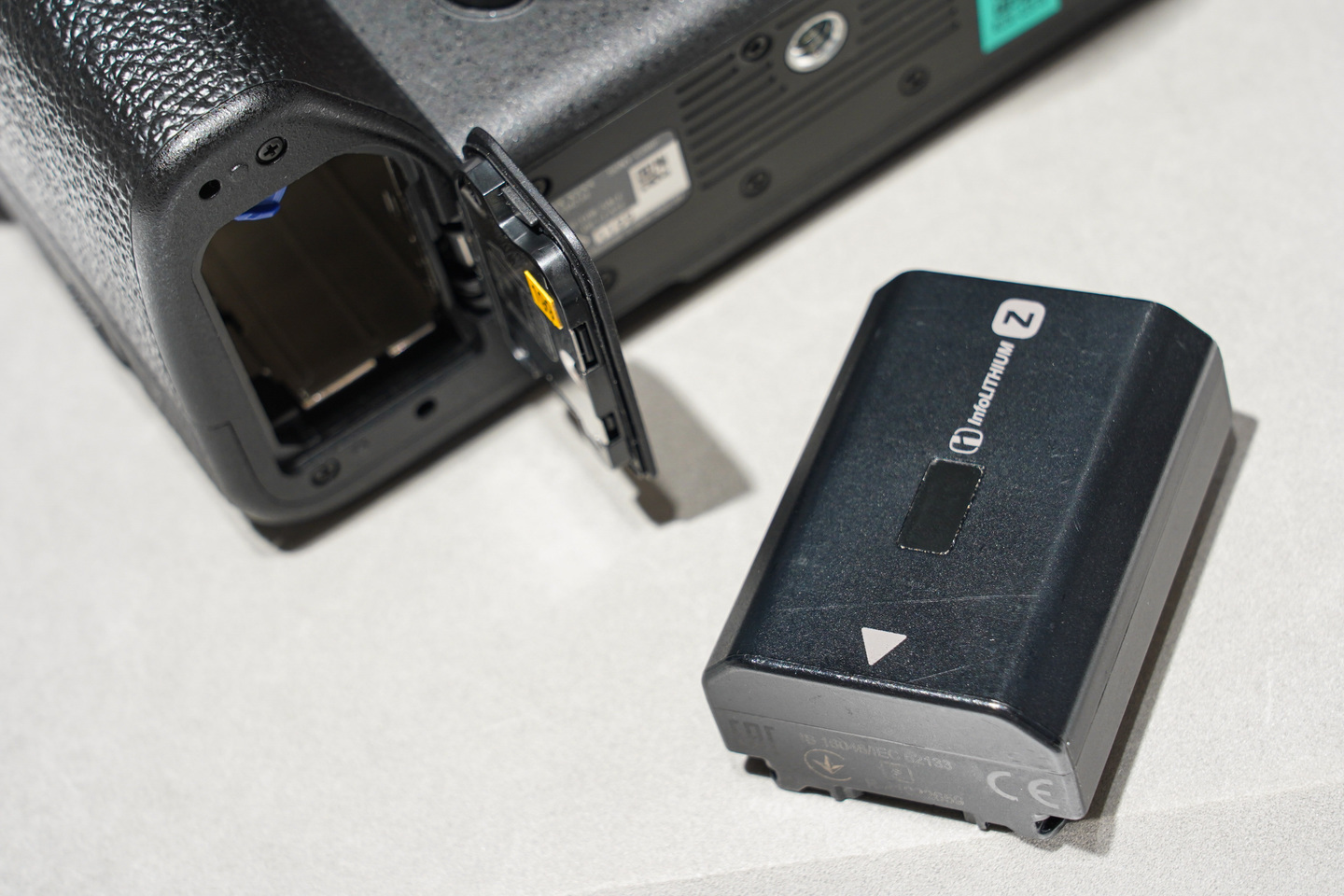 バッテリーはα7 IIIなどと共通の「NP-FZ100」を使用しており、静止画はファインダー使用時に約520枚、液晶モニター使用時に約580枚撮影ができます。動画撮影時は実動でファインダー使用時に約100分、液晶モニター使用時に約110分撮影出来ます。同クラスのミラーレスカメラと比較すると非常に省電力設計に優れ、1本のバッテリーで長く撮影する事ができます。