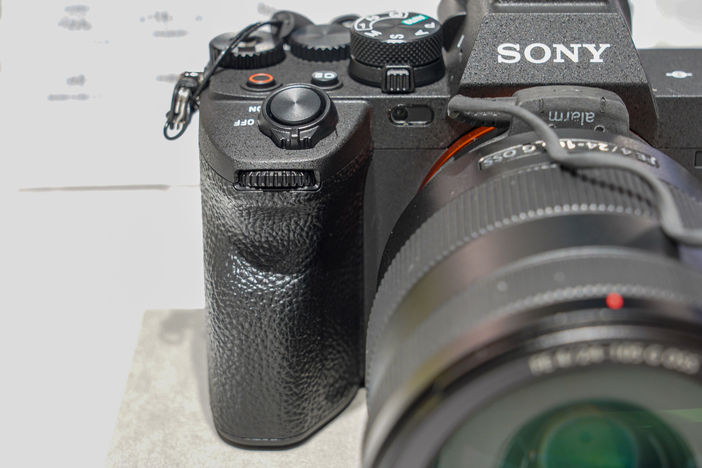 従来モデルに比べるとグリップは深くなっていてしっかりと握ることが出来ます。この辺もボディーサイズと同じく、α7R IV、α7S III、α1のグリップのホールド感と似た印象があります。小指が余ることなくしっかり握り込むことができるので、重たいレンズを装着した際の安定感もα7 IIIより上がっていると感じました。