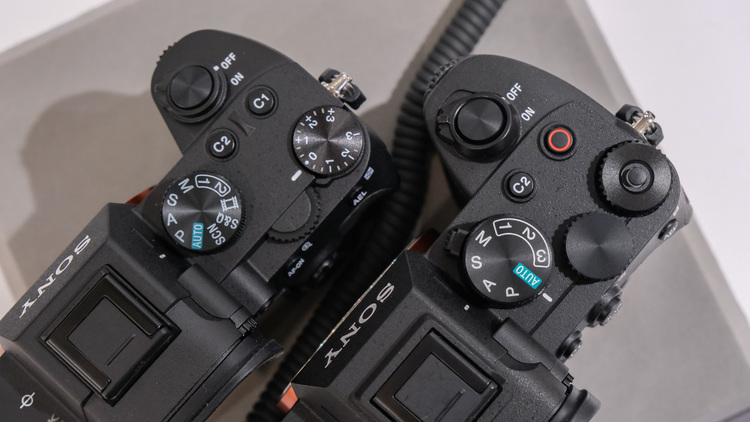 天面向かって左側にあるモードダイヤルは2層構造になりました。上には従来通り撮影モードが選択できるようになっており、その下には静止画、動画、スロー&クイックを選択できるダイヤルがついています。動画撮影の場合は今まで撮影モードダイヤルを動画にして、その後A,S,Mなどをカメラ内のメニュー画面で切替える必要がありましたが、この切替スイッチにより動画撮影時でもモードダイヤルでA,S,Mなどの撮影モードを選択する事ができるようになっています。