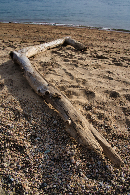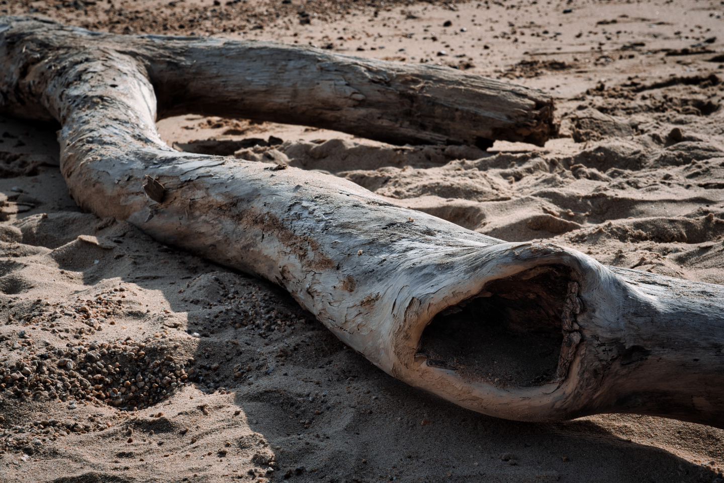 ■流れ着いた流木を中望遠で撮影。被写界深度を優先してF22まで絞って撮影。どこかノスタルジックな写り。