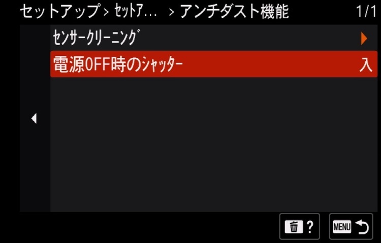 ■アンチダスト機能・・・電源OFF時のシャッター「入」