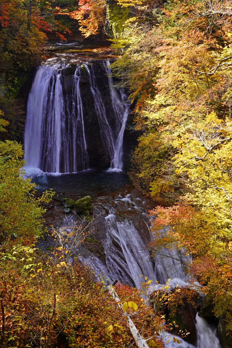 遊歩道を登って滝が見えるポジションに。滝の流れる水をスローシャッターで表現したいので、頑張って手持ち撮影でチャレンジ。なんとかギリギリ表現できたでしょうか……。