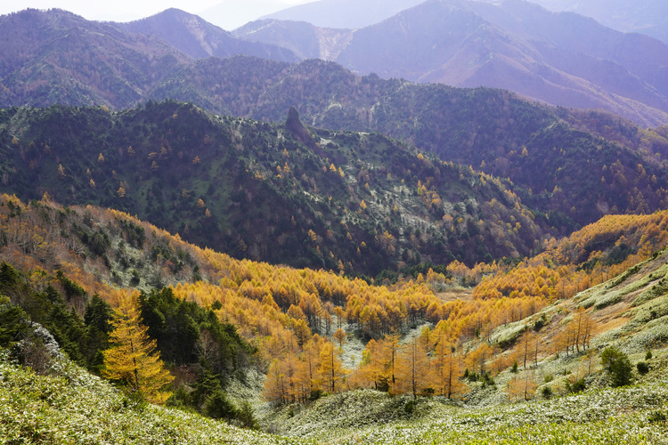 ちょうど木々の色が変わり始めた山々。唐松が黄色く変化していて、とても美しく風景を見ることができました。