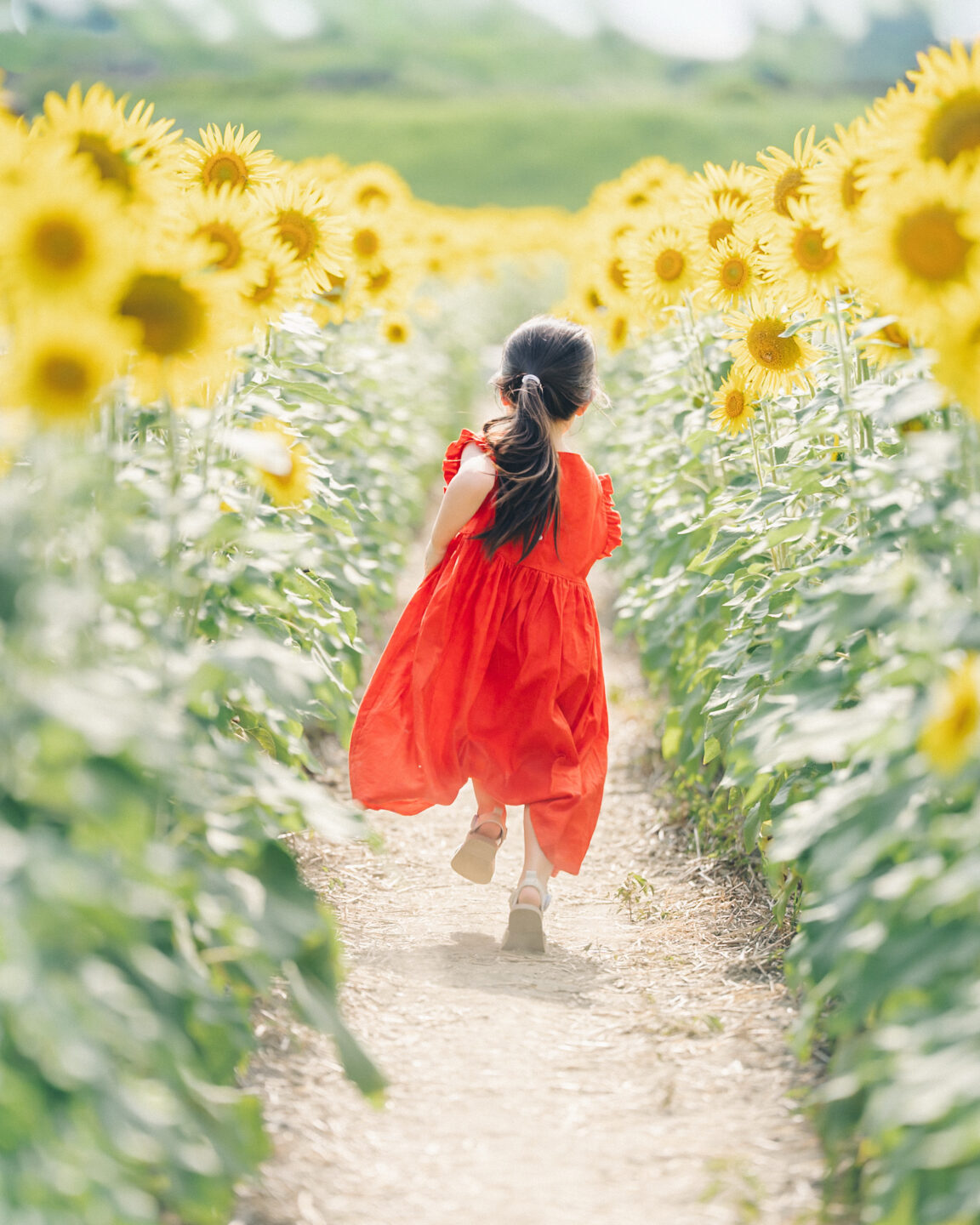 綺麗な景色やお花畑と一緒に撮ると、子どもたちがぐっと際立って物語の主人公のようになります。